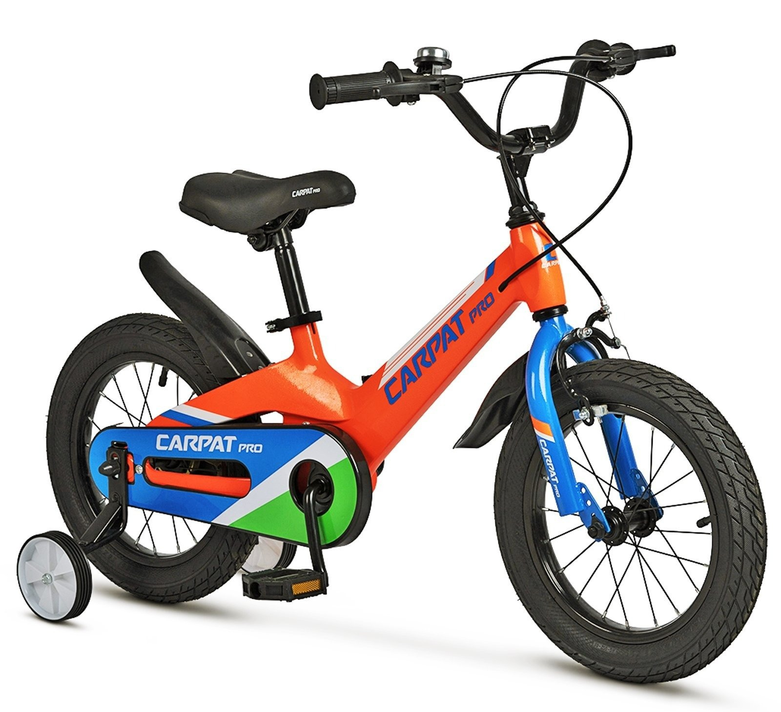 Bicicleta copii 16" CARPAT Pro 16122, cadru aluminiu, frane V-Brake/tambur, portocaliu/albastru, varsta 4-6 ani