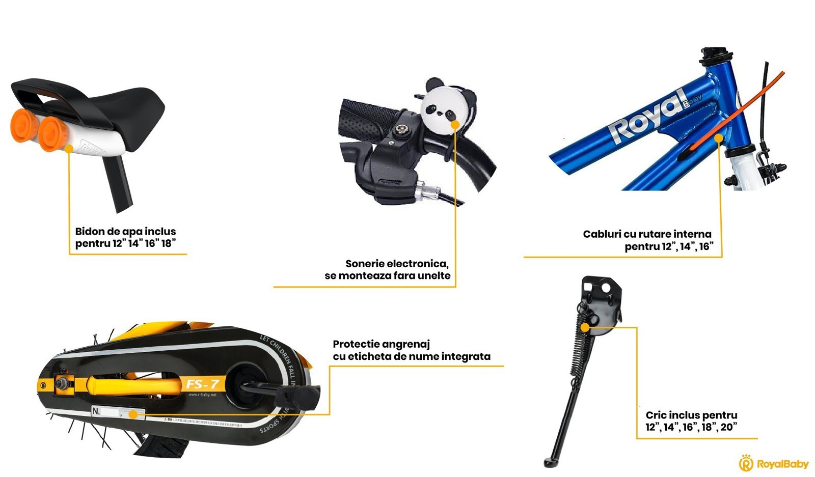 In timp ce standardele inalte de securitate vor face parintii fericiti, cosurile integrate, soneriile sau bidoanele de apa, accesorii care de obicei nu exista pe bicicletele pentru copii, vor face deliciul acestora.