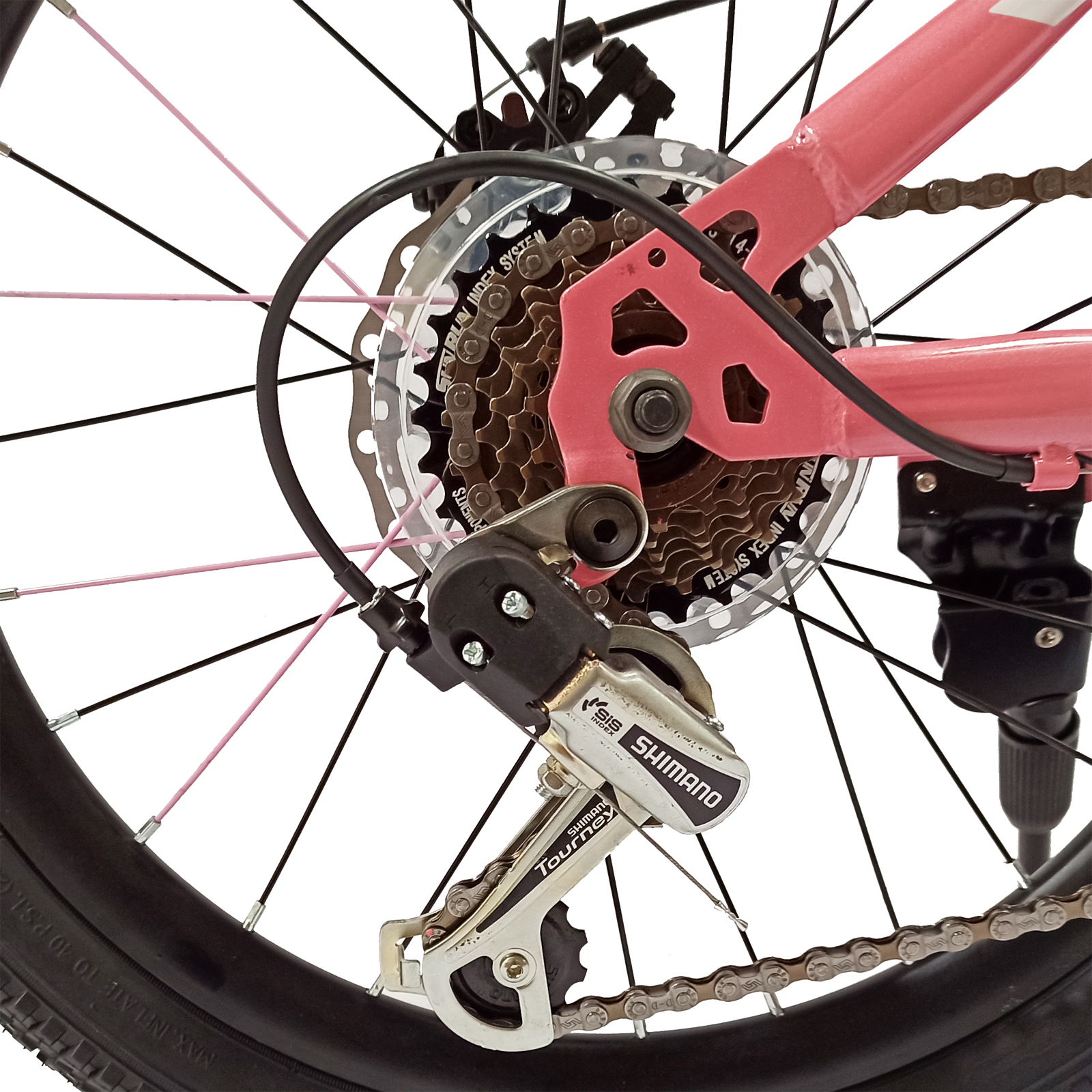 Bicicleta copii 20" BR Inspire, cadru otel 12", manete revoshift, frane disc, 7 viteze, roz, varsta 7-10 ani