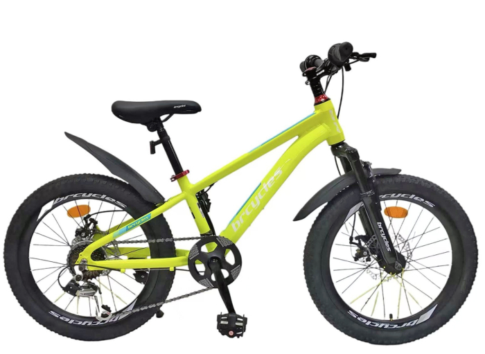 Bicicleta copii 20" BR Tornado, cadru aluminiu 12", manete revoshift, frane disc, 7 viteze, galben fluo, varsta 7-10 ani