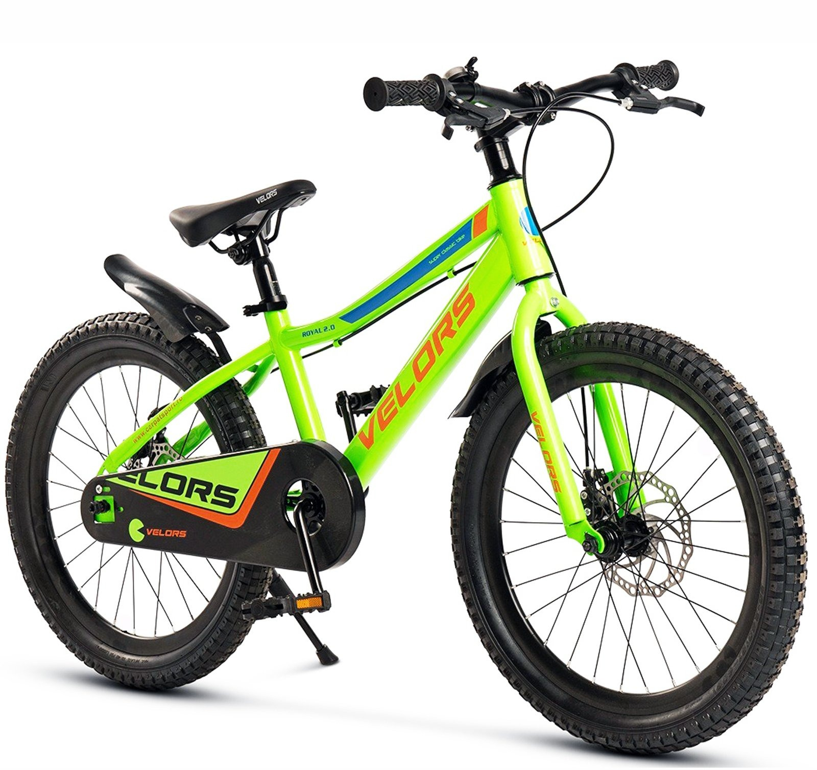 VELORS Bicicleta copii 20" VELORS Royal 2.0, frane disc, single speed, verde/portocaliu, varsta 7-10 ani