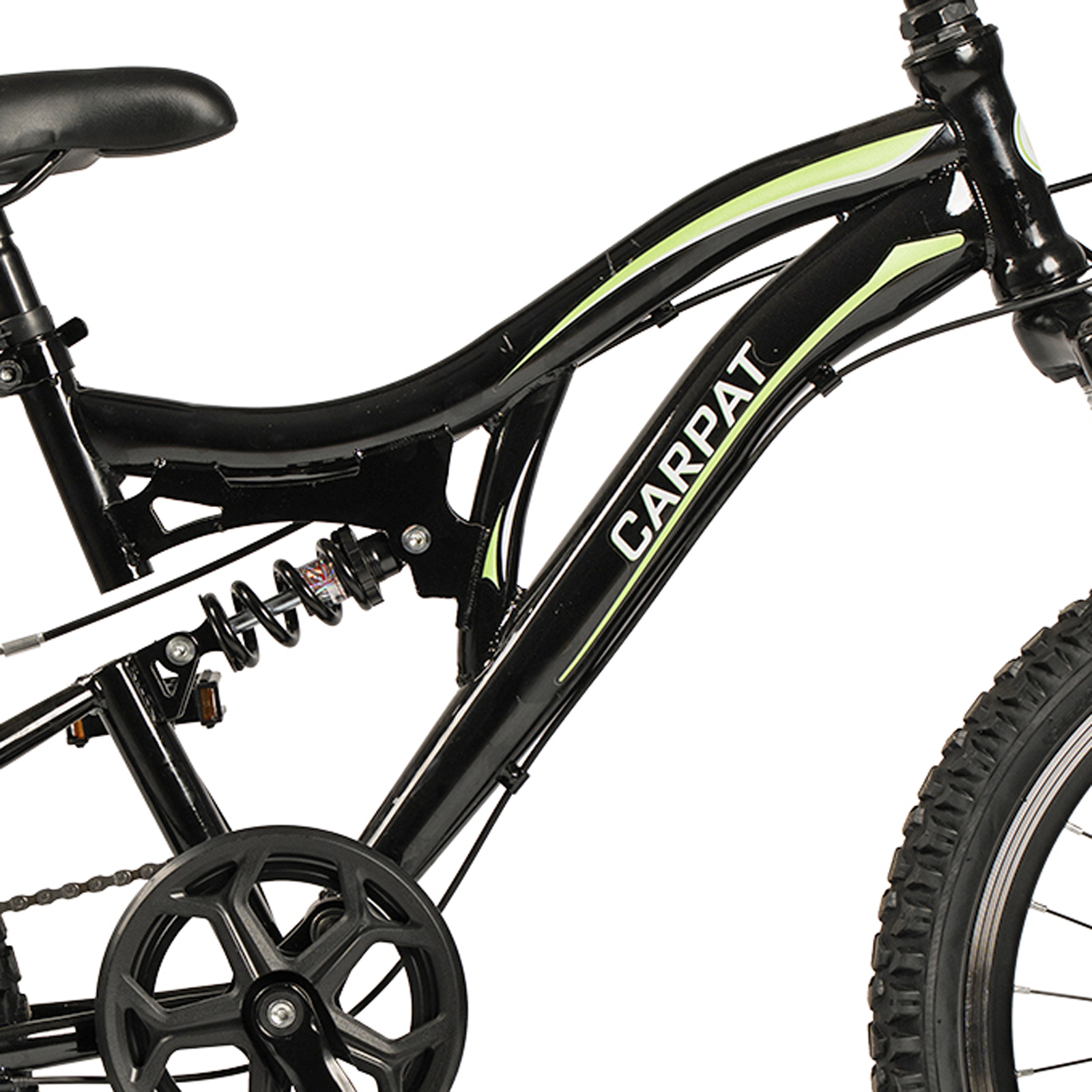 Bicicleta copii MTB-FS 20" CARPAT Alpin 2.0, cadru otel, manete RevoShift, frane V-Brake, 7 viteze, negru/verde, varsta 7-10 ani