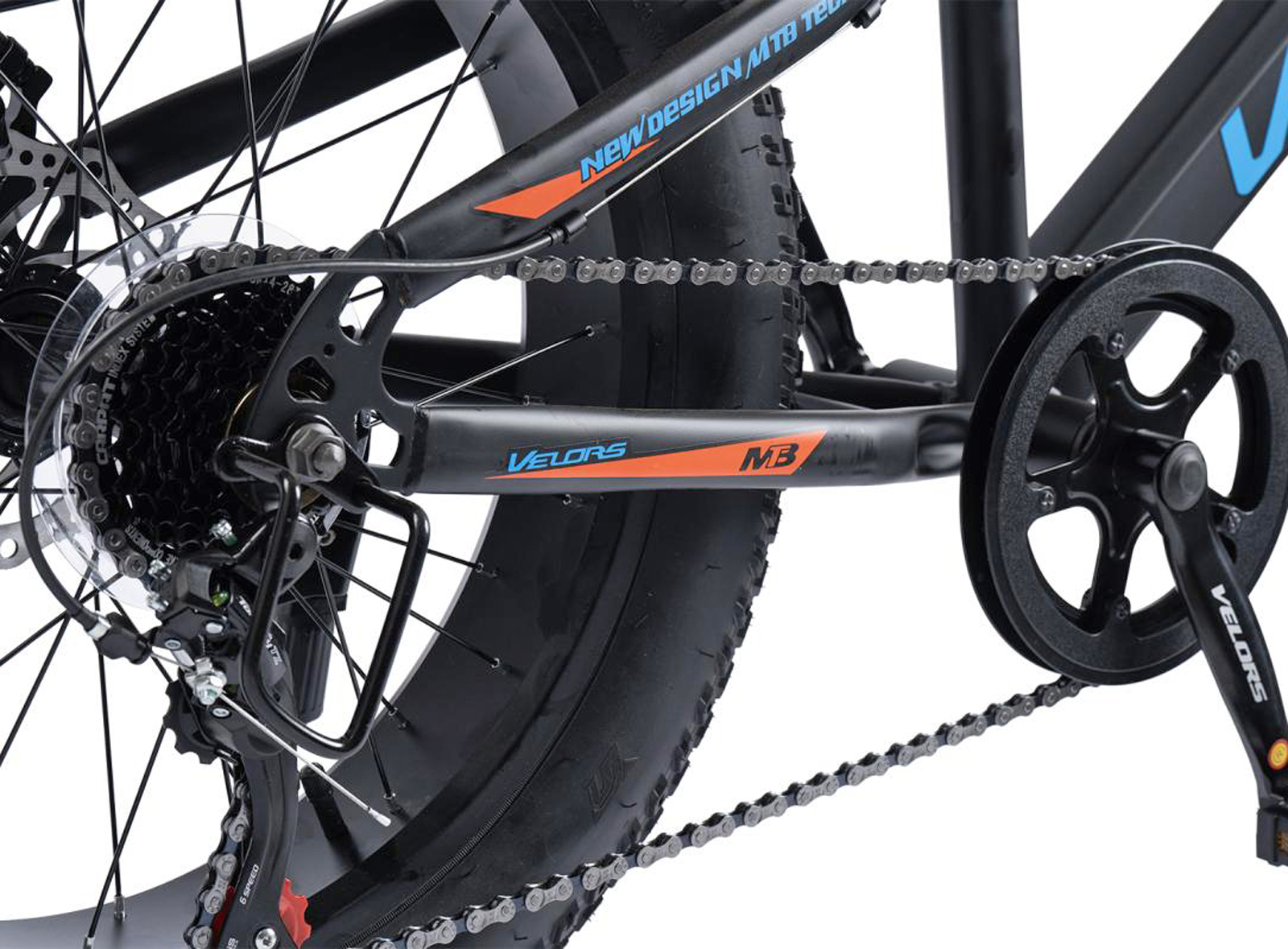Bicicleta Fat Bike 20" VELORS Hercules, cadru otel 13.5", manete RevoShift, frane disc, 7 viteze, negru/albastru, varsta 7-10 ani