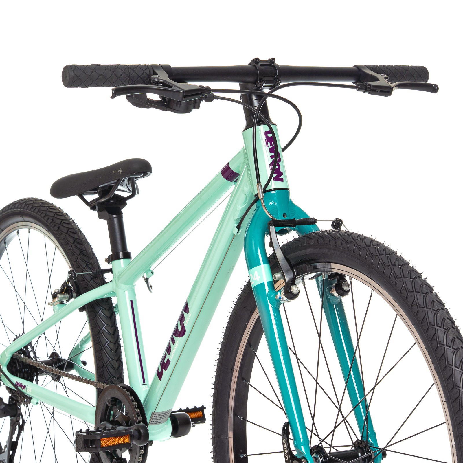 - Frane V-brake eficiente: Sistem de franare V-Brake aluminiu SACCON 103 mm cu manete special concepute pentru copii.