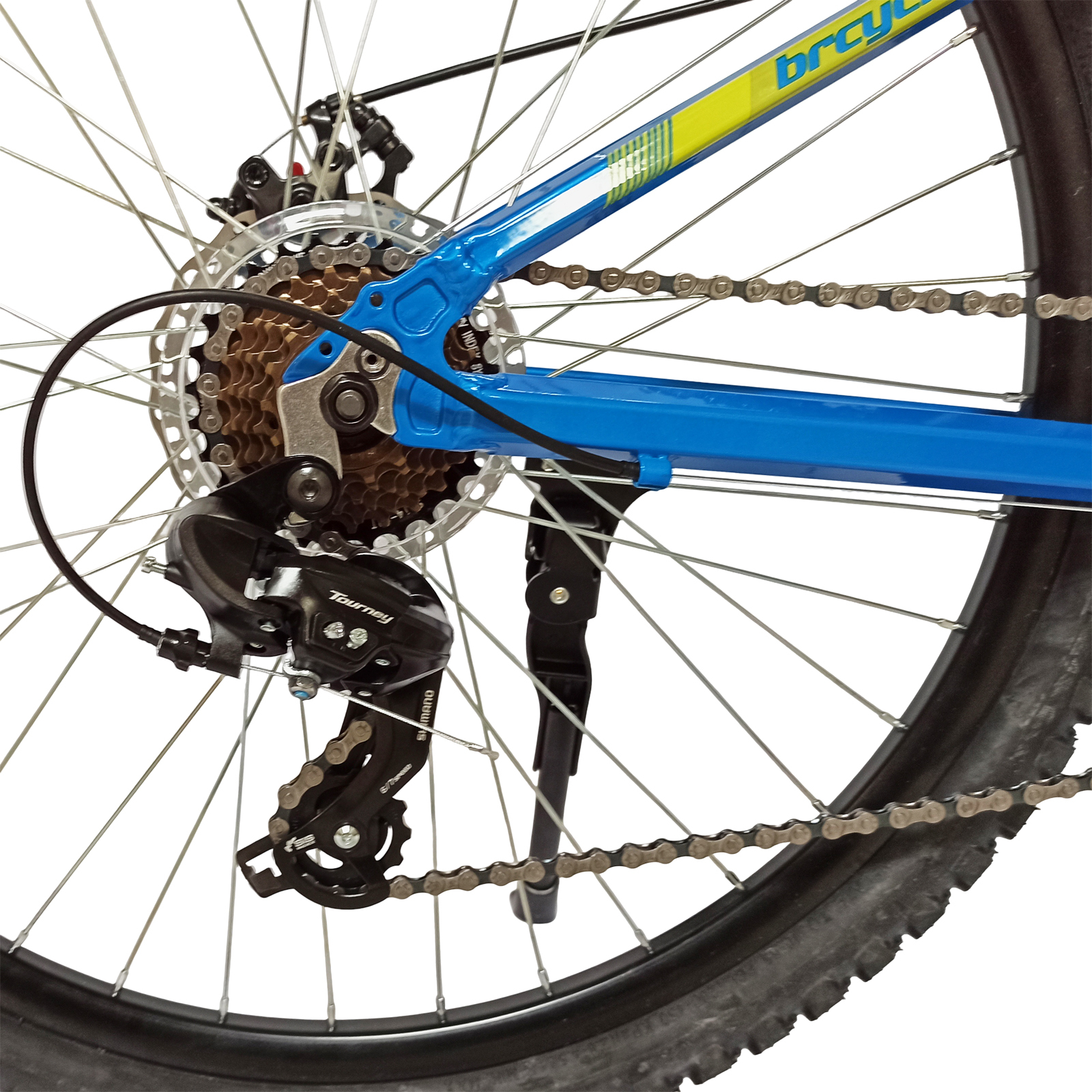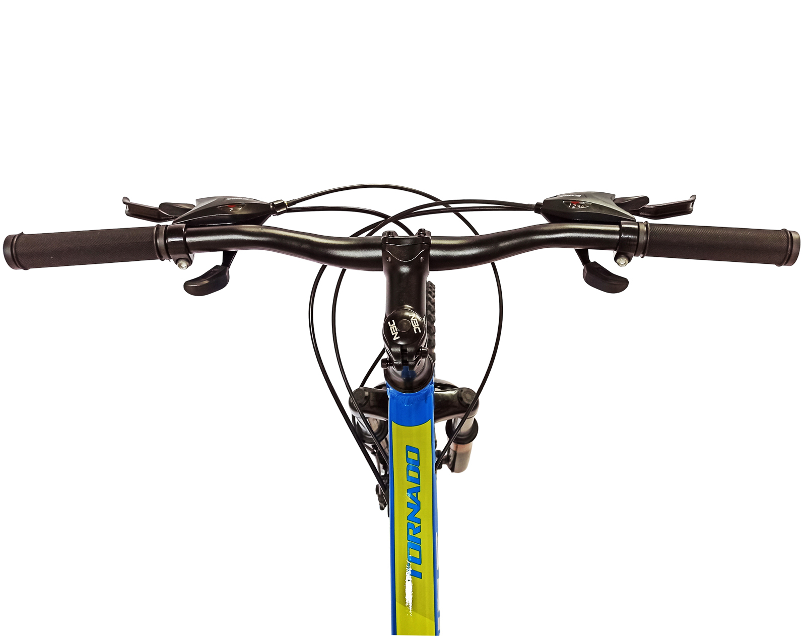 Bicicleta MTB-HT 24" BR Tornado, cadru aluminiu 13", manete secventiale, frane disc, 21 viteze, albastru/galben lucios