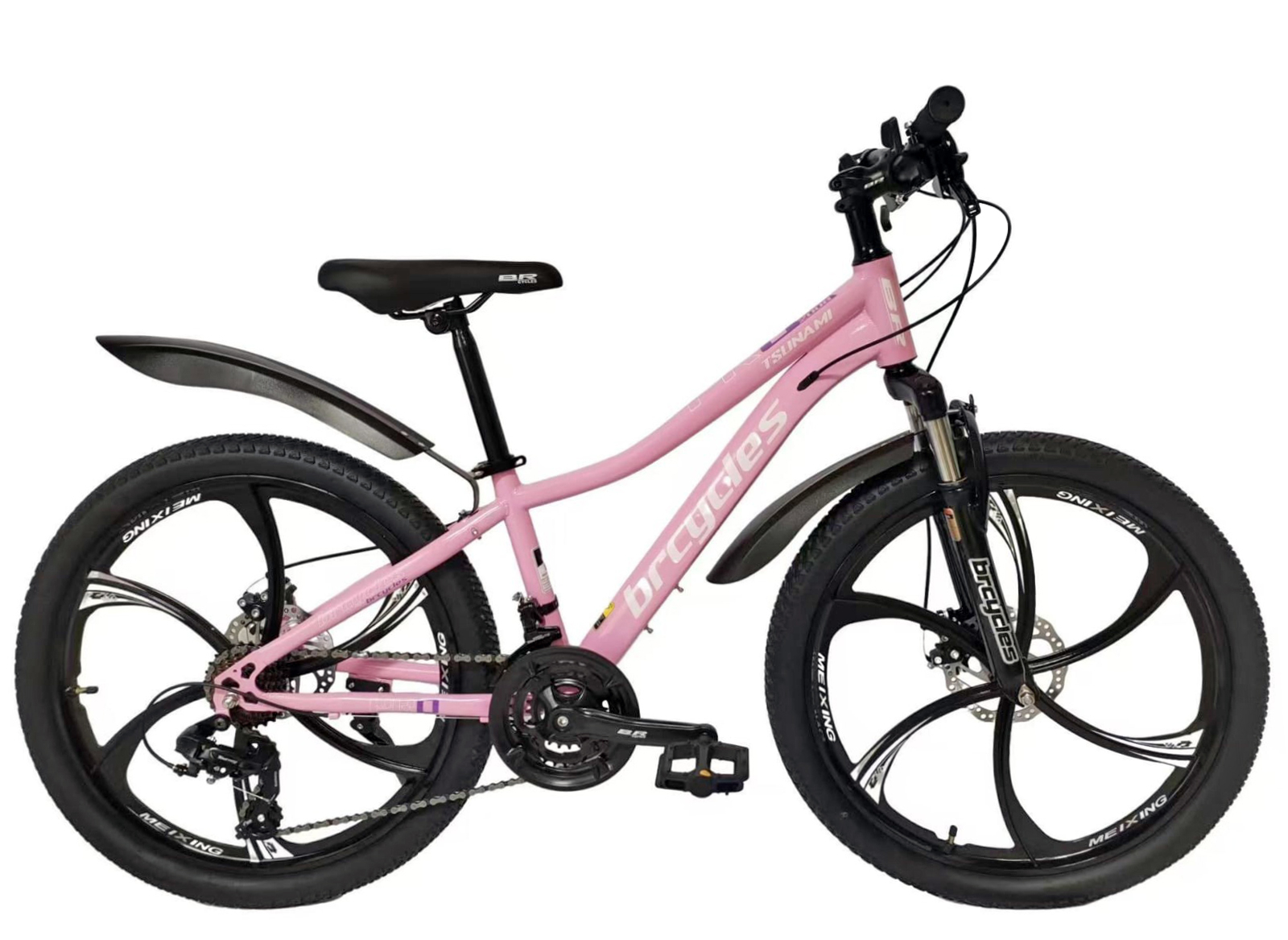 Bicicleta MTB-HT 24" BR Tsunami ProMG, cadru otel 13", jante magneziu, manete secventiale, frane disc, 21 viteze, roz