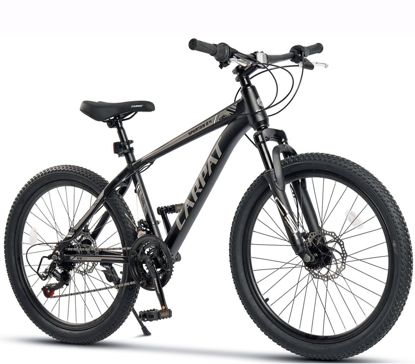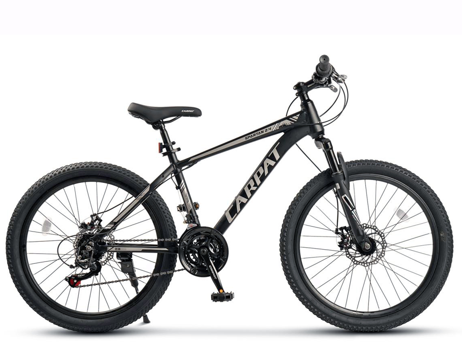 Bicicleta MTB-HT 24" CARPAT Spartan 2.4, cadru aluminiu 14.5", manete RevoShift, frane disc, 21 viteze, negru/gri