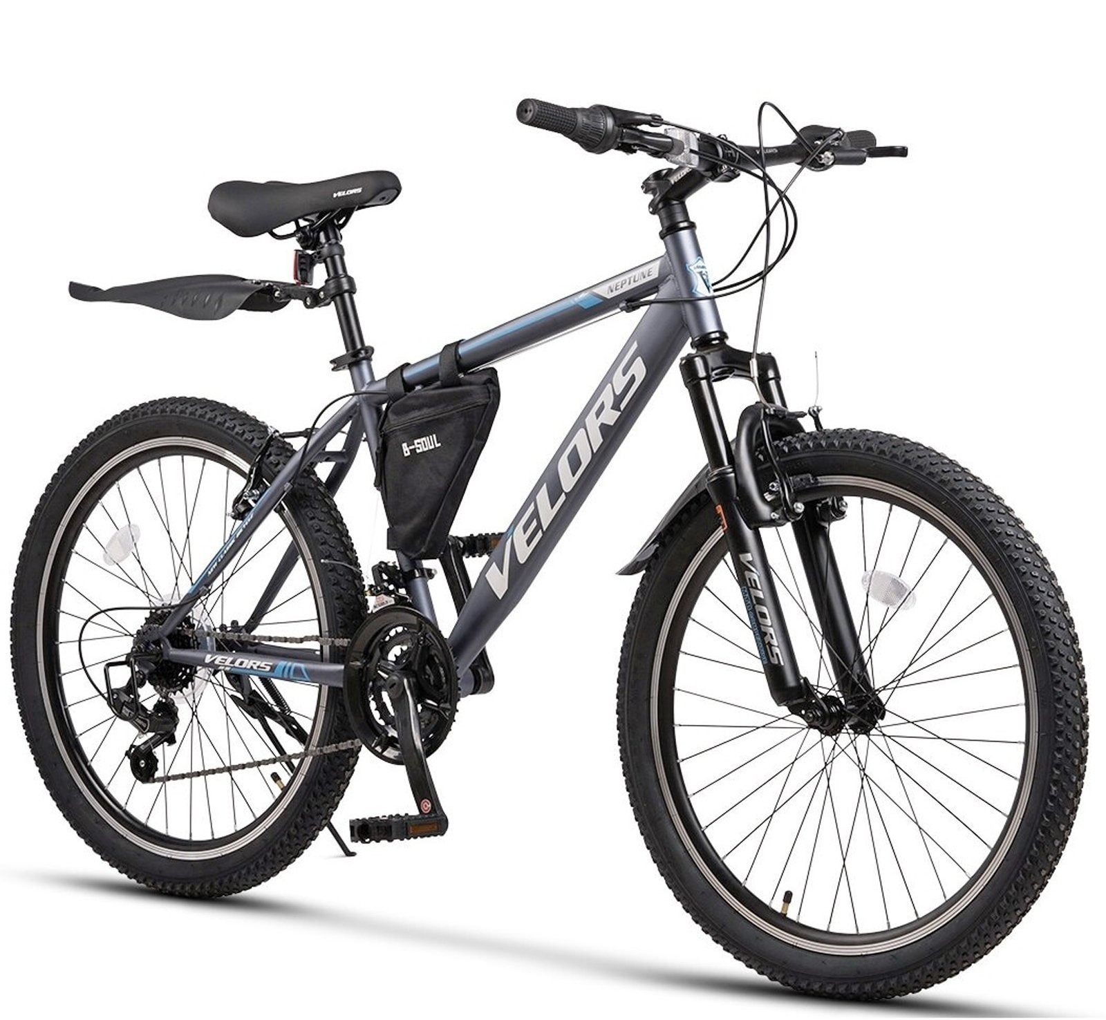 Bicicleta MTB-HT 24" VELORS Neptune, cadru otel 17", manete RevoShift, frane V-Brake, 21 viteze, gri/albastru
