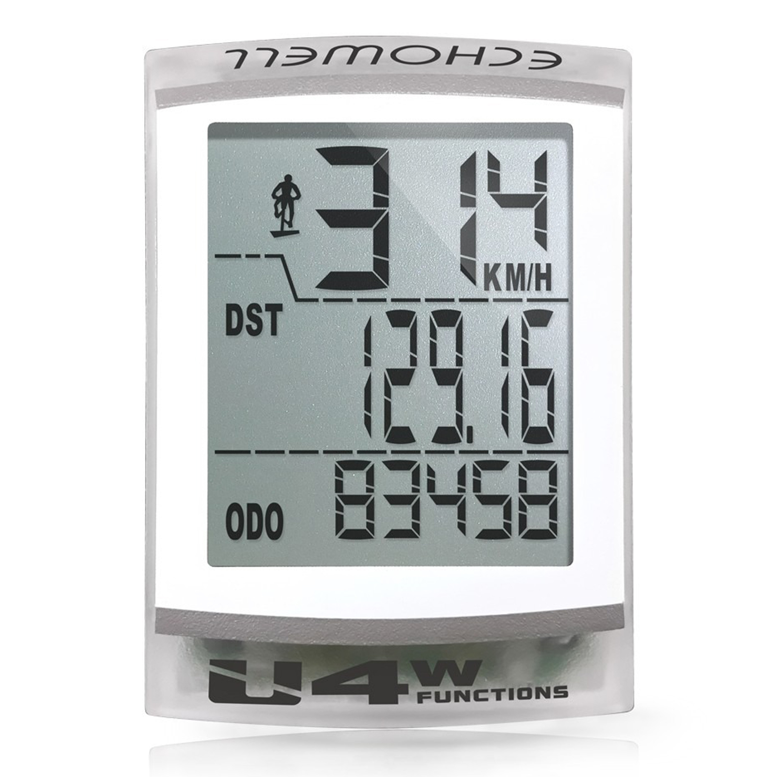 - Vitezometru Echowell U4W este cu fir, cu 4 functii, dintr-un material impermeabil;