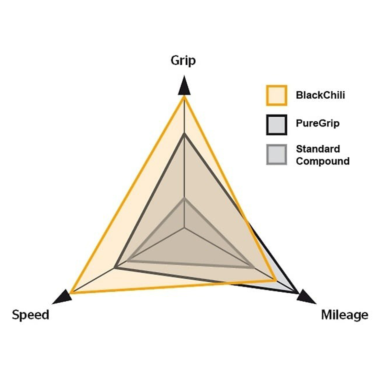 BlackChili Compound - Un tip special de compound, produs exclusiv in Germania, care a dus la revolutionarea ciclismului. Este materialul care a oferit raspunsul la problema eterna a celui mai bun raport intre aderenta si rezistenta la inaintare. Testele facute atat in laborator cat si pe sosea au evidentiat avantaje notabile pentru ciclisti. Cei mai noi polimeri, dar si particulele negre din carbon si fillerul special conceput pentru aceasta formula garanteaza o performanta unica. Pe scurt, BlackChili Compound maximizeaza aderenta, viteza si durata de exploatare a anvelopei.