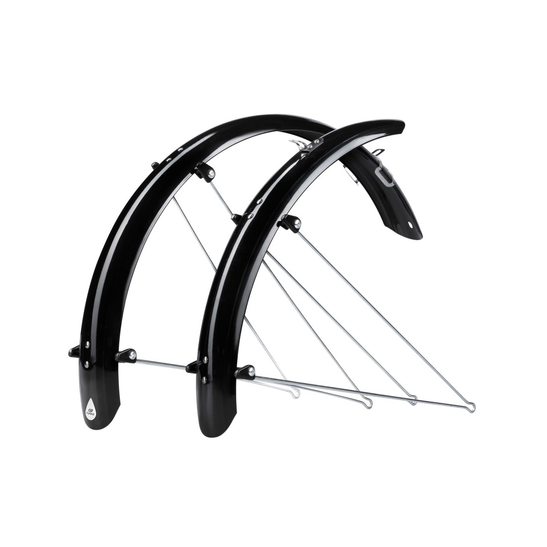 set de apărători noroi față + spate conceput pentru roți de 20 lățimea apărătorului: 58 mm material: PET cu suporturi din oțel în două piese + brațe din oțel inoxidabil greutate: 470 g în unele cazuri este necesară ajustarea lungimii brațelor prin scurtare ambalat în pungă de plastic fabricat în Italia