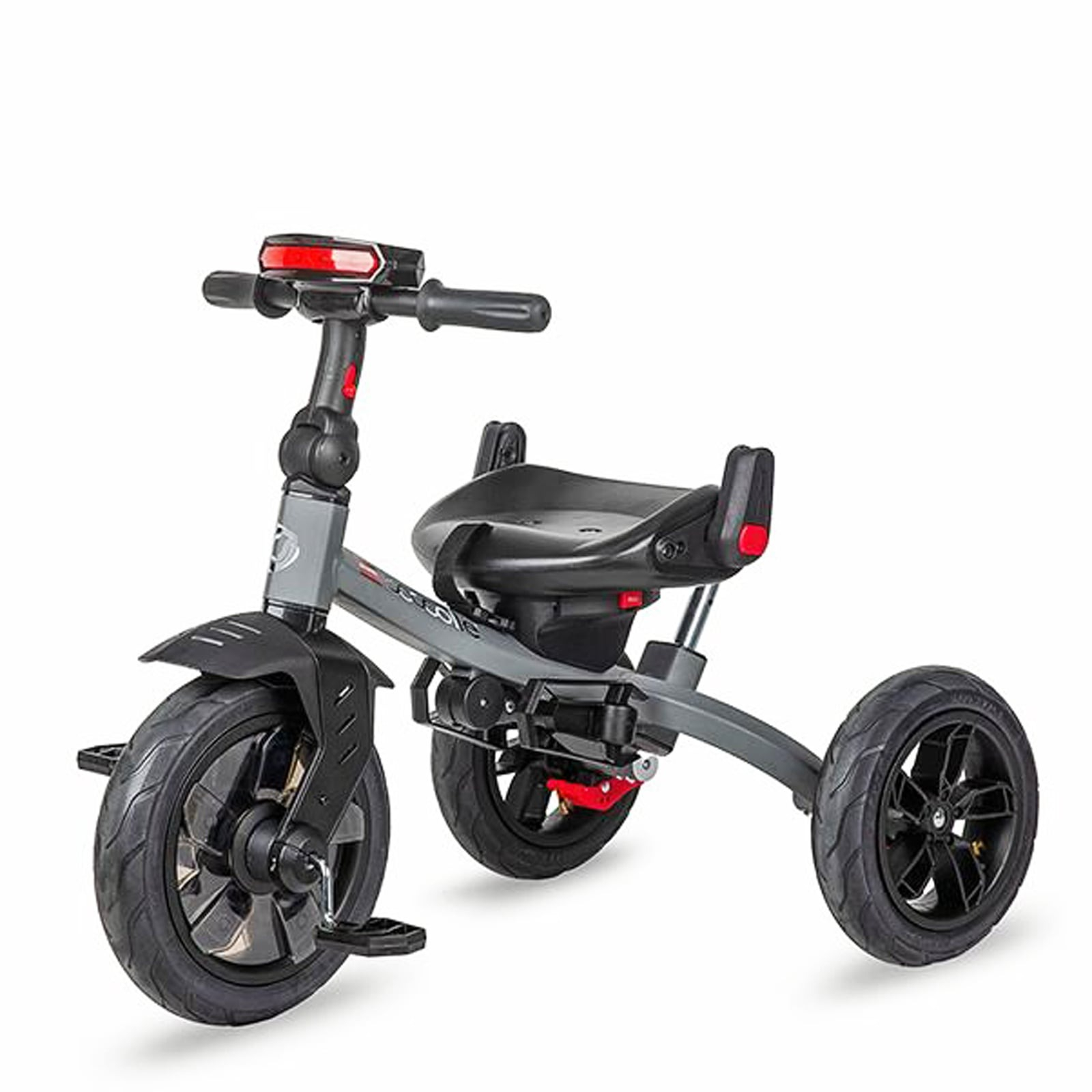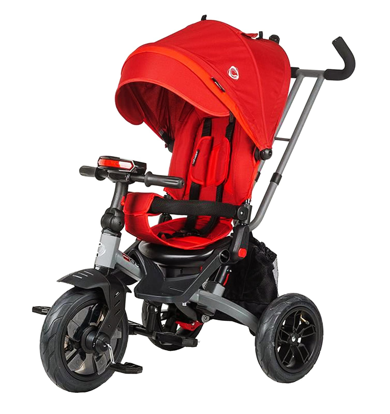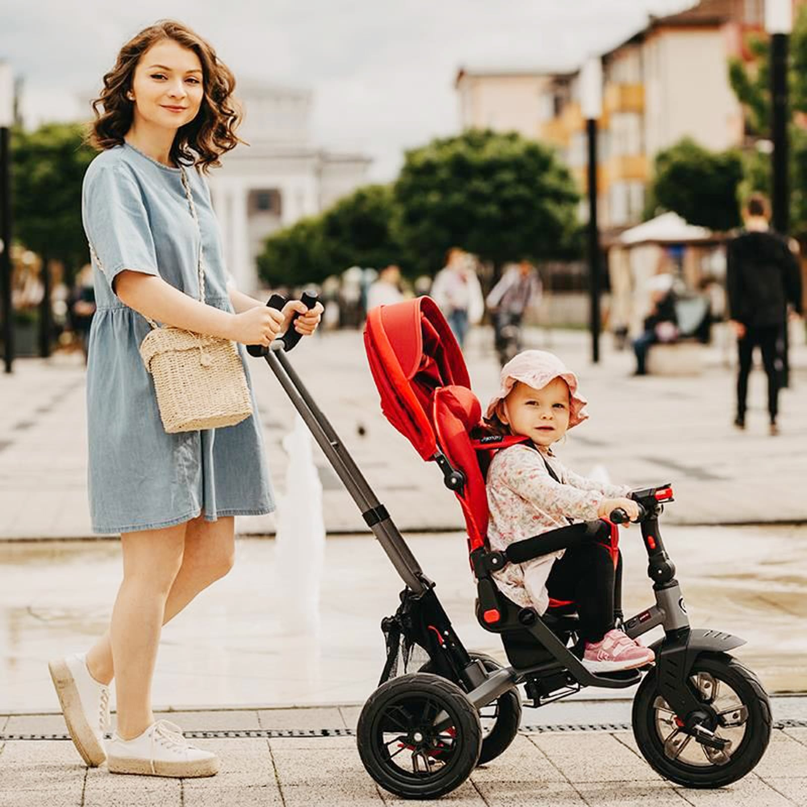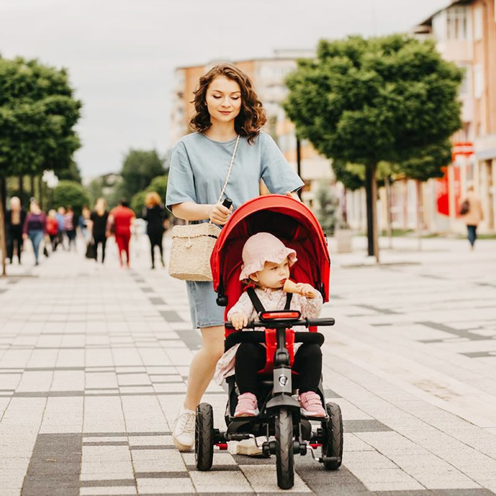 Tricicleta este realizata din materiale de calitate, durabile si echipata cu o multitudine de accesorii menite sa il faca pe cel mic sa se simta bina, in timp ce ii confera parintelui confortul utilizarii.