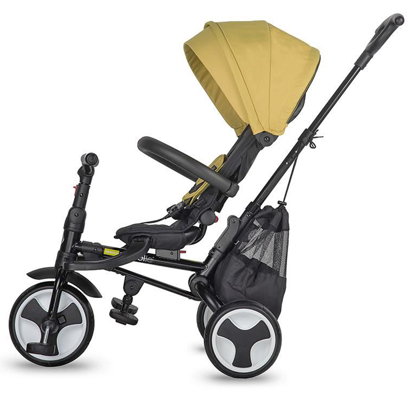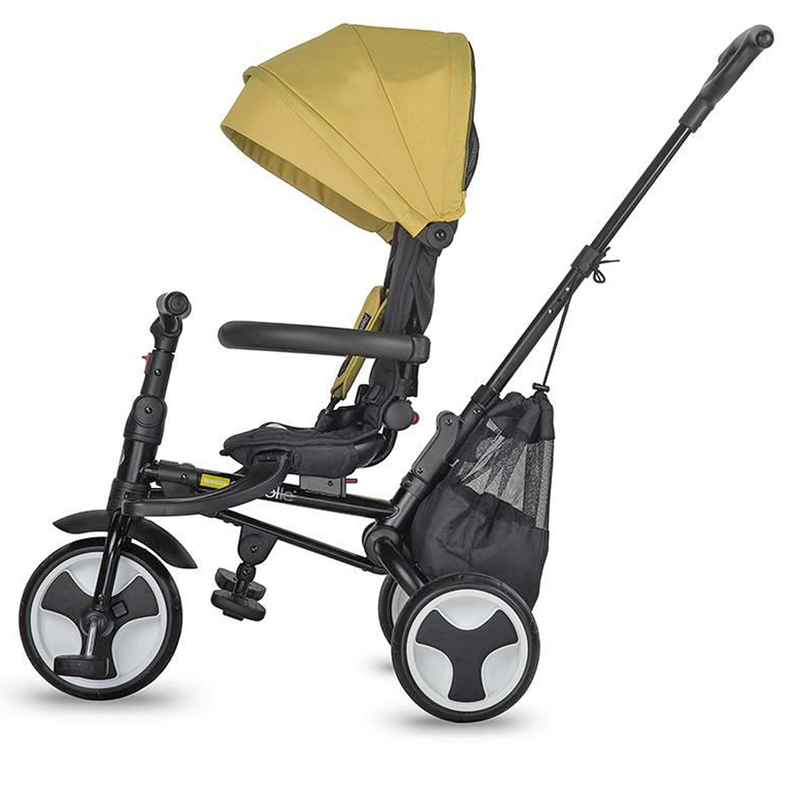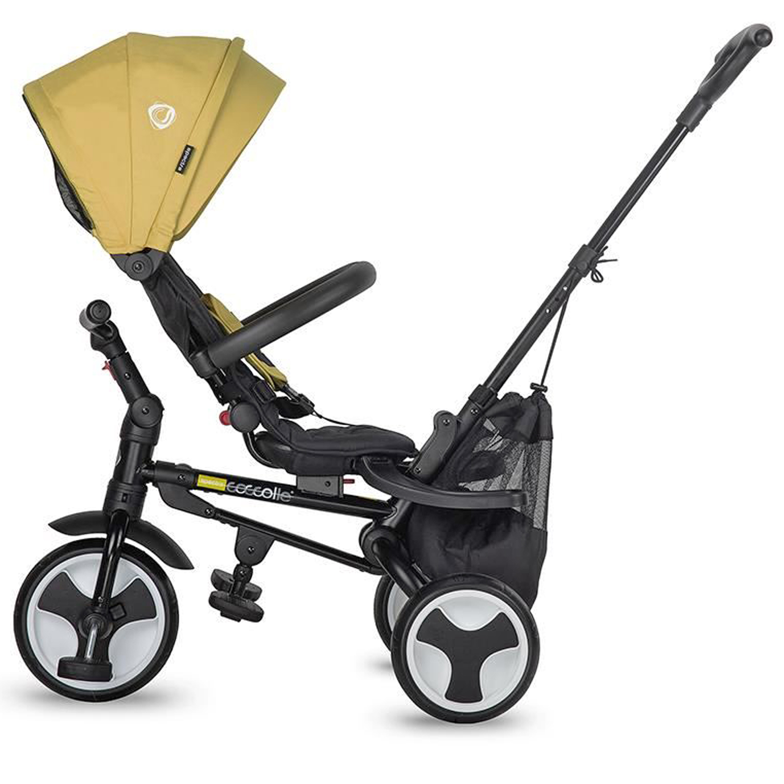 Pentru a spori confortul copilasilor, dar a si prelungi timpul petrecut afara, tricicleta este conceputa pentru a oferi o pozitie comoda de somn atat pentru utilizarea cu fata la sensul de mers, cat si cu spatele  intrucat ghidonul se pliaza si confera inca un grad de inclinare spatarului. Dotata cu centura de siguranta in 5 puncte, produsul ofera siguranta necesara in oricare stadiu al utilizarii acestuia.