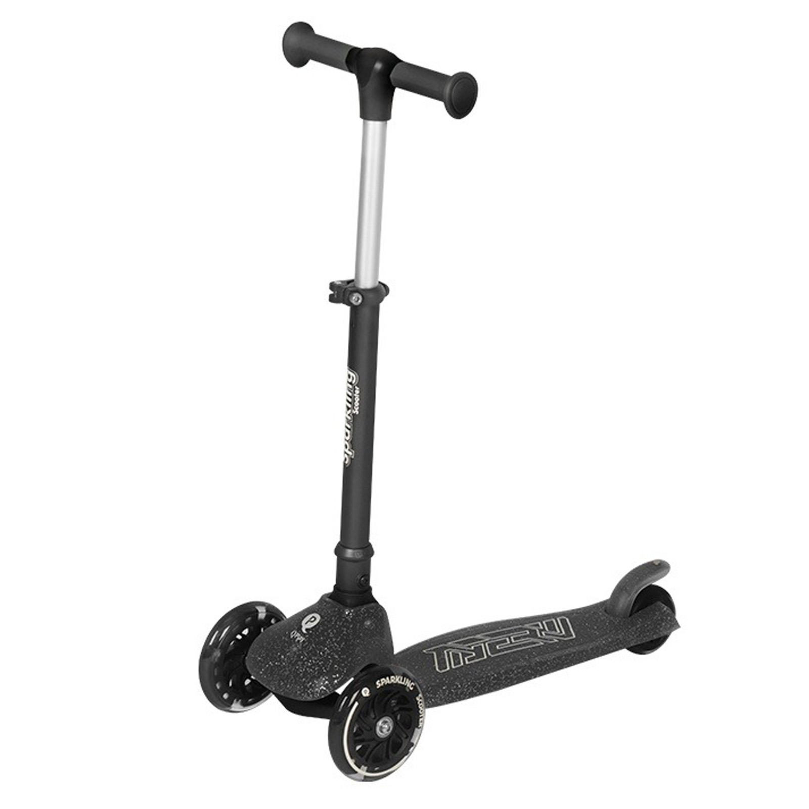 Trotinetă cu 3 roți QPlay Sparkling – roți cu lumini LED, platformă cu sclipici, pliere rapidă (de la 3 ani)