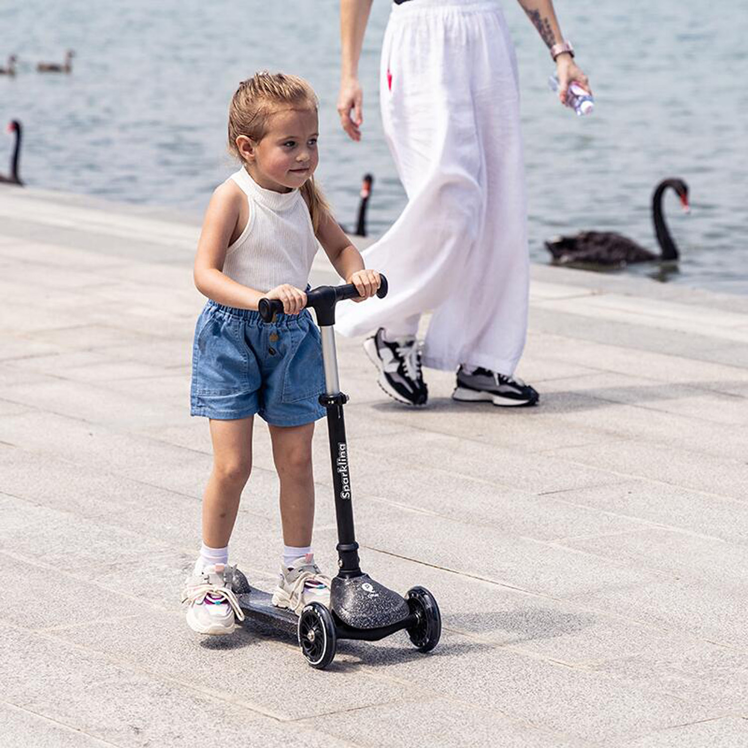 Când vrei o trotinetă care să fie stabilă, ușor de controlat și super „wow” la fiecare plimbare, QPlay Sparkling bifează tot: 3 roți pentru echilibru, direcție prin înclinarea corpului, roți luminoase LED care se aprind în mers (fără baterii) și o platformă antiderapantă cu sclipici.