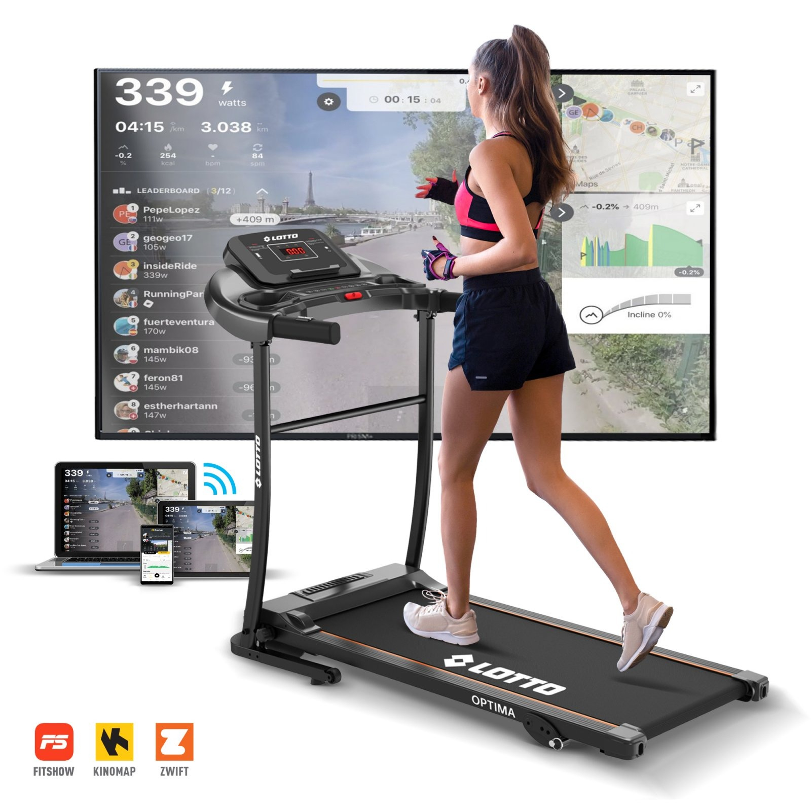 | CONECTIVITATE | posibilitatea împerecherii calculatorului cu un smartphone sau tableta prin intermediul tehnologiei Bluetooth pentru controlul benzii prin intermediul aplicațiilor FitShow/Kinomap/Zwift | ||