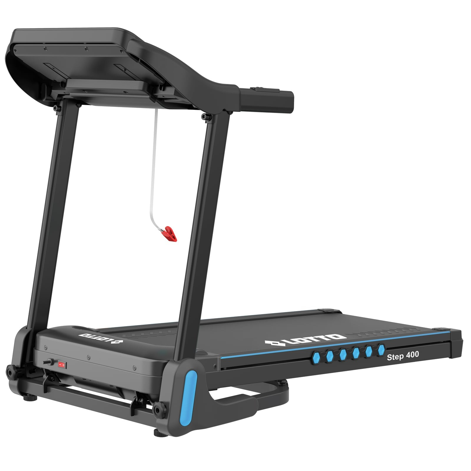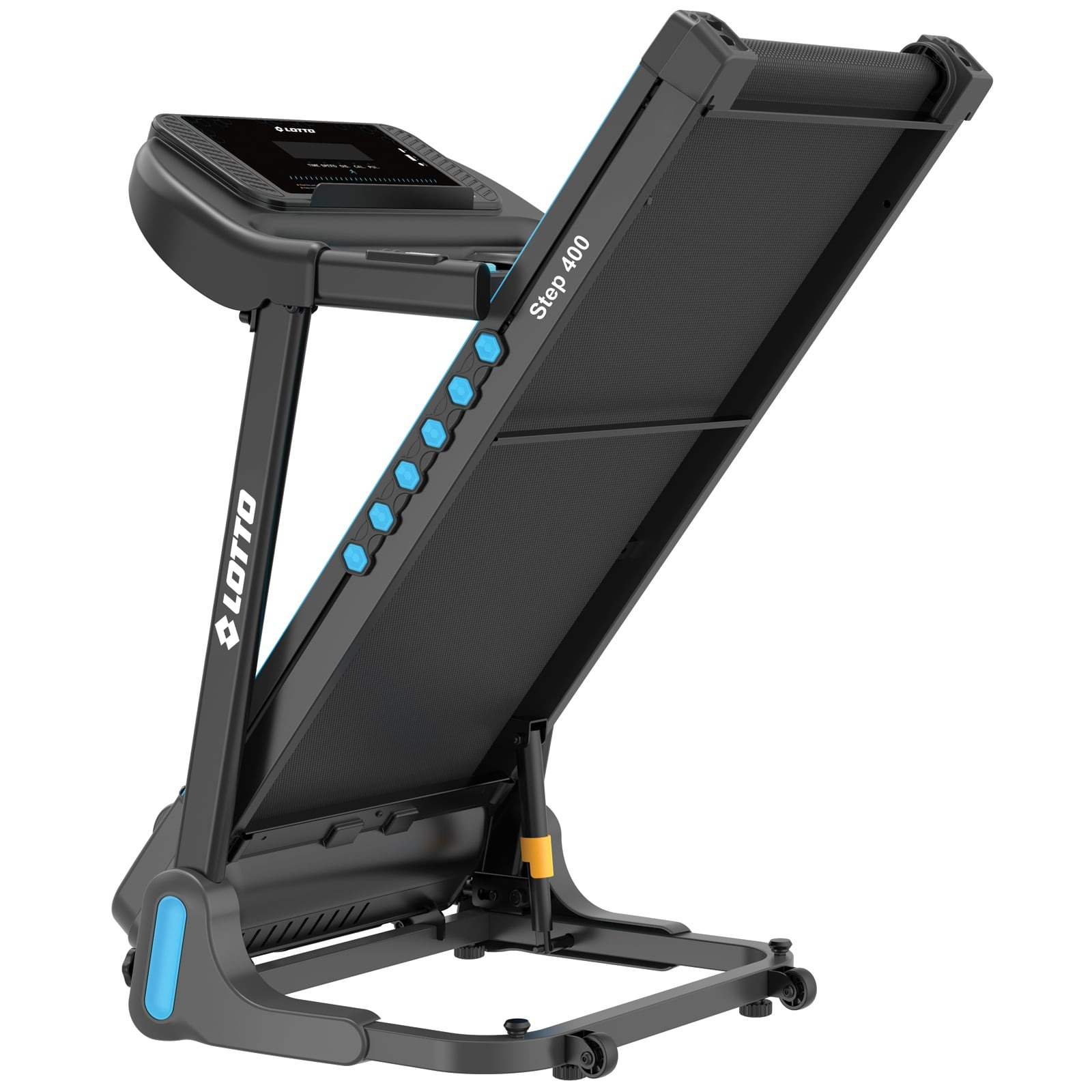 Banda este pliabilă pe cilindru și se deplinează lin printr-o simplă apăsare, fiind ușor de transportat datorită roților integrate. Sistemul de amortizare cu perne elastice protejează articulațiile, iar produsul este livrat 95% asamblat, gata de utilizare imediată. LOTTO Step 400 combină puterea, confortul și tehnologia într-un singur echipament de fitness pentru acasă.