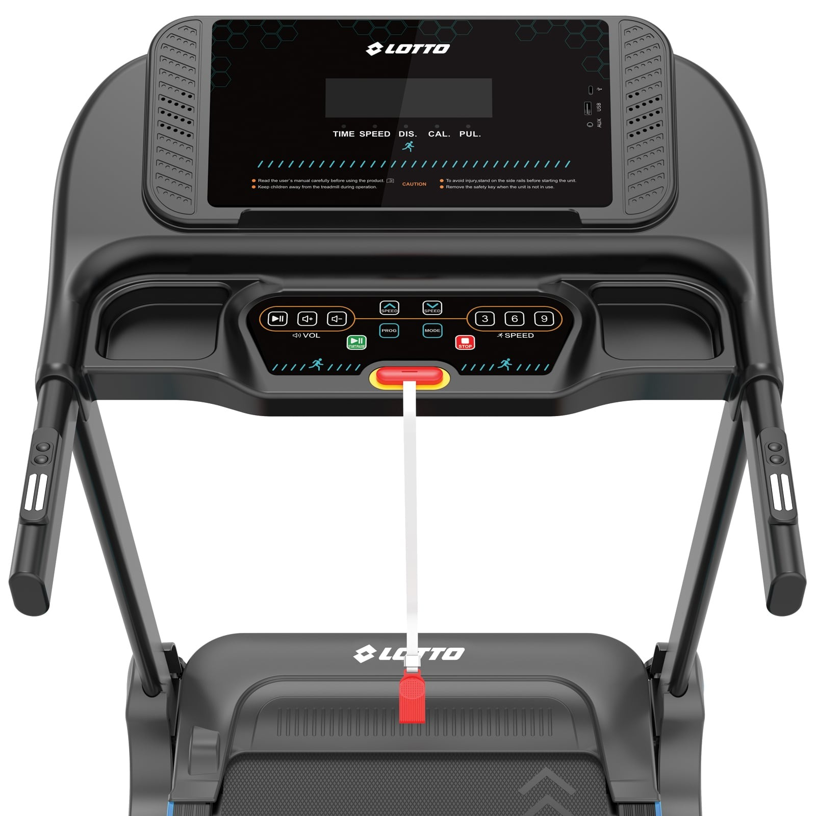 Calculatorul LED integrează toate funcțiile esențiale – viteză, timp, distanță, calorii și puls – iar cele 12 programe presetate aduc diversitate și motivație în fiecare antrenament. Senzorii de puls de pe mânere și tastele rapide permit ajustarea ușoară a setărilor, fără a întrerupe alergarea.