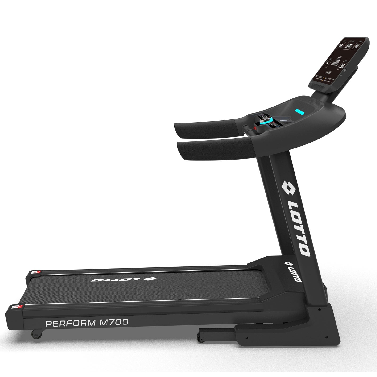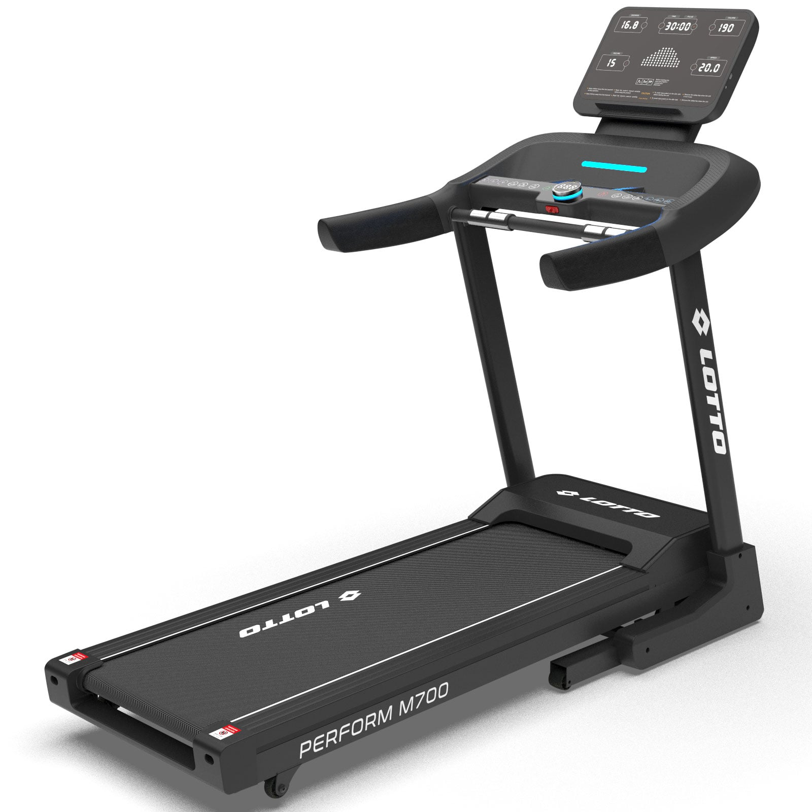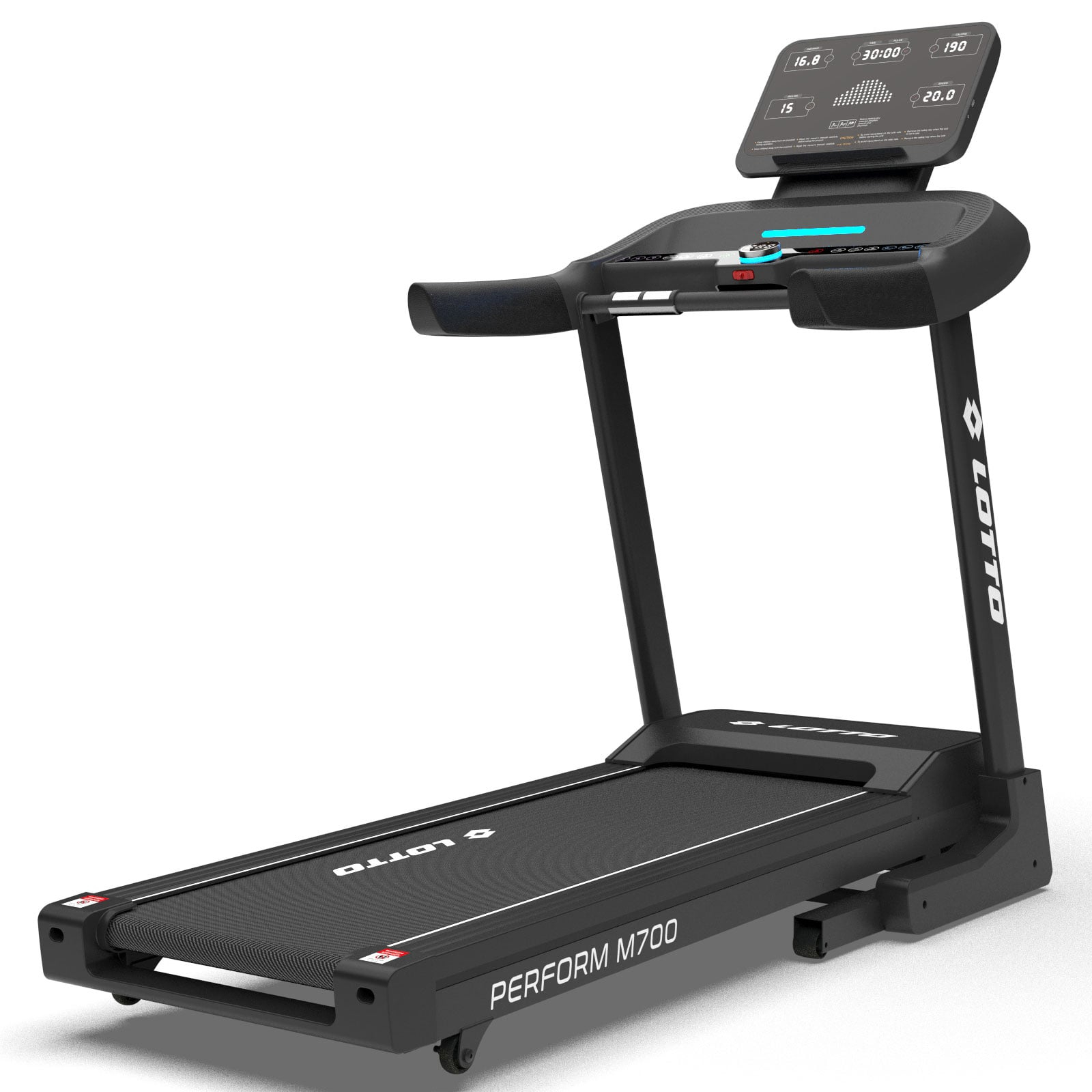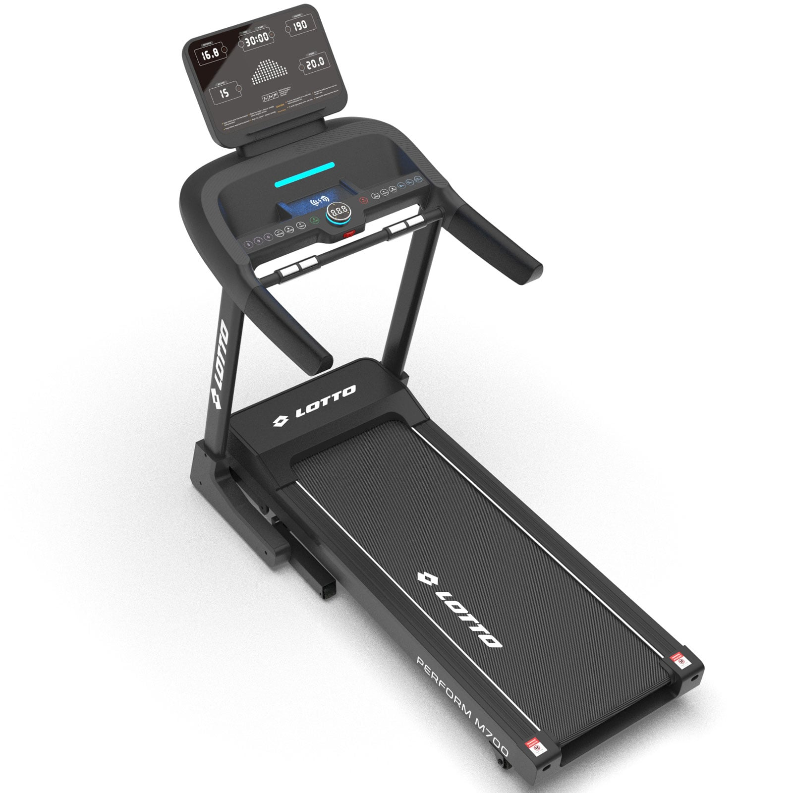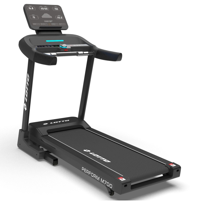 Banda de alergat electrică LOTTO Perform M700 este un model premium pentru uz casnic, creat pentru utilizatorii care caută performanță, confort și funcții avansate direct acasă. Cu un design solid și pliabil, oferă stabilitate la antrenamente și economisește spațiu atunci când nu este utilizată.