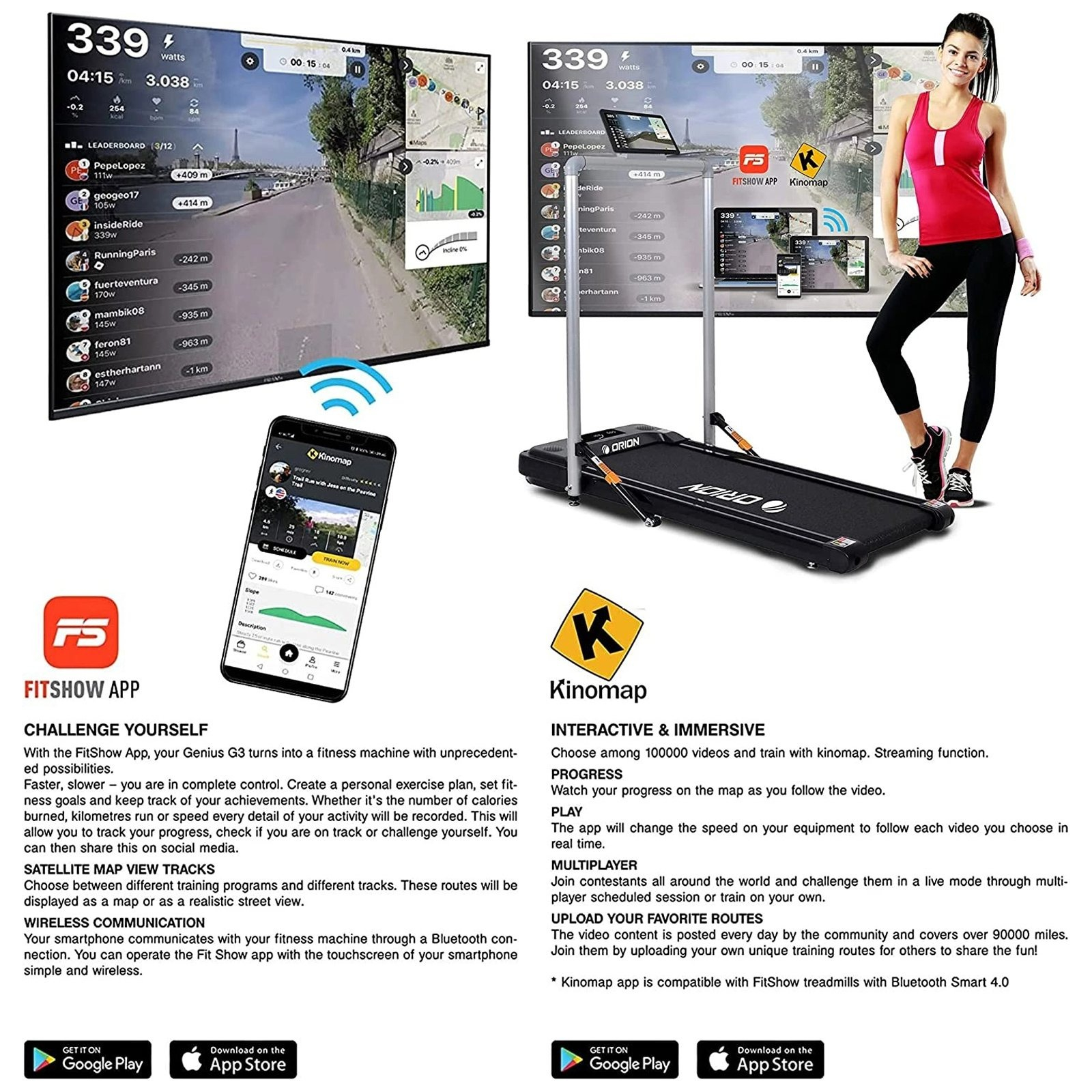 Produsul este compatibil cu aplicatiile FitShow, Zwift si Kinomap, aplicatii ce pot fi instalate pe telefon din GooglePlay sau AppStore. Utilizarea acestor aplicatii poate genera costuri suplimentare, dezvoltatorii aplicatiilor putand oricand opta pentru varianta demo pe perioada limitata si varianta full contra-cost.