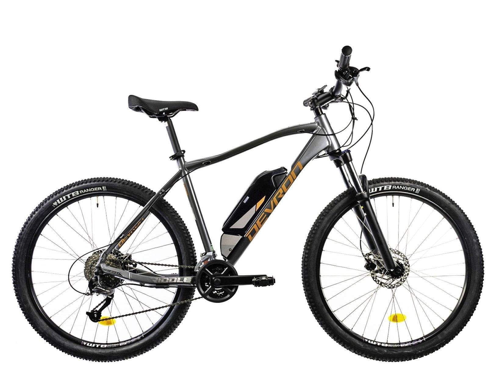 Bicicleta electrica MTB-HT 27.5" DEVRON Riddle M1.7, cadru aluminiu 19.5", manete secventiale, frane hidraulice, 18 viteze, gri