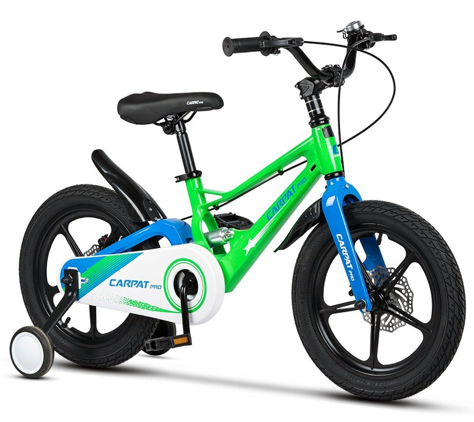 Bicicleta copii 16" CARPAT Pro 16144, cadru aluminiu full-suspension, jante magneziu, verde/albastru, varsta 4-6 ani