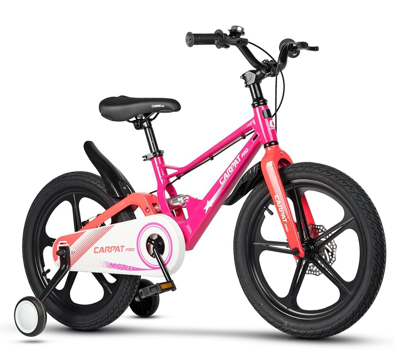 Bicicleta copii 18" CARPAT Pro 18144, cadru aluminiu full-suspension, jante magneziu, frane disc, fucsia, varsta 5-7 ani