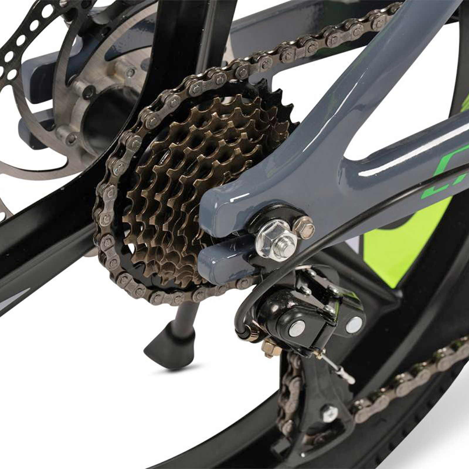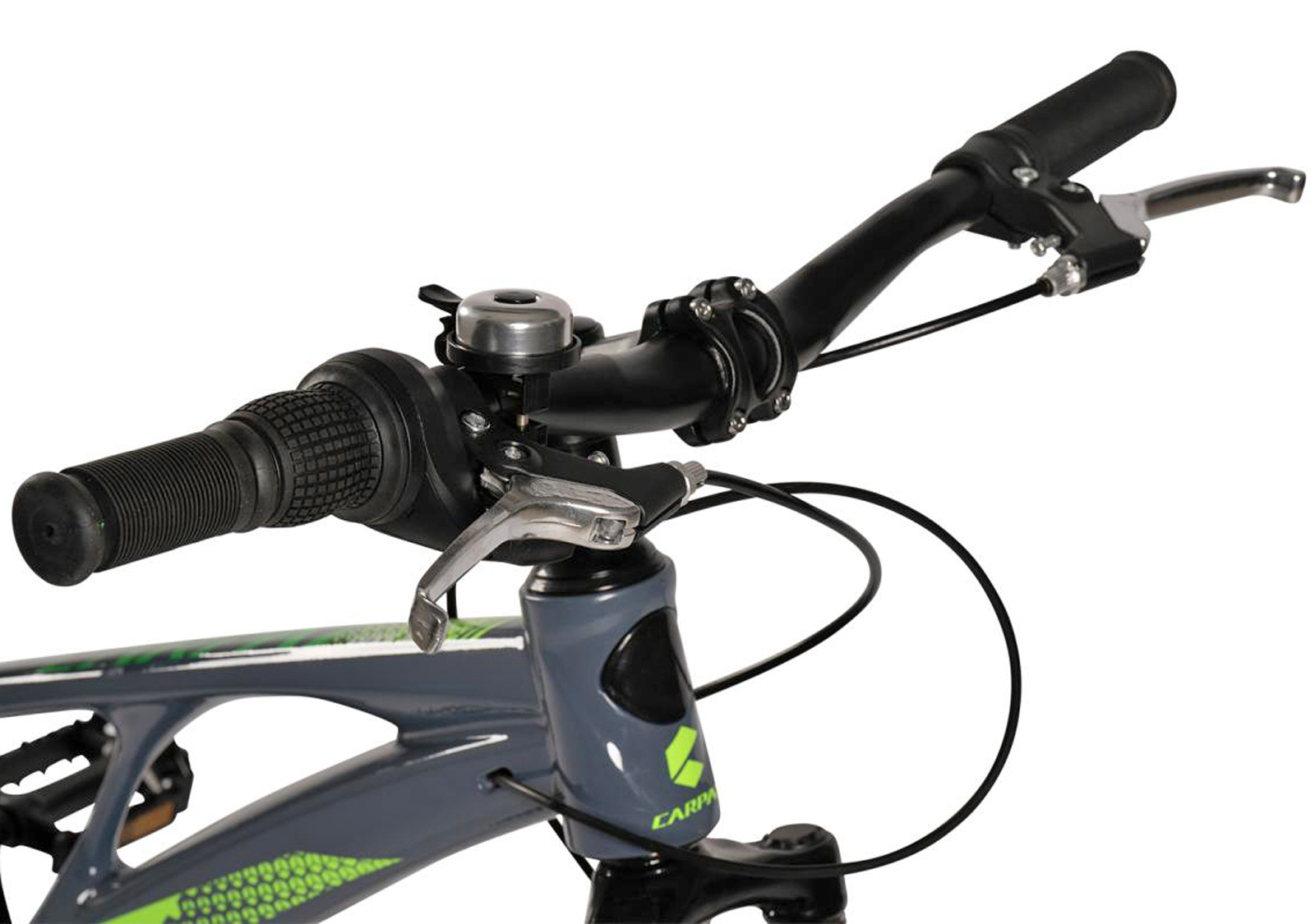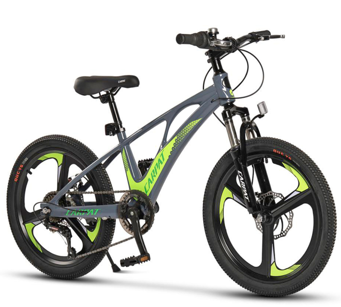 Bicicleta copii 20" MTB-HT CARPAT C20343, jante magneziu, cadru aluminiu 8.5", 7 viteze, gri/verde, varsta 7-10 ani