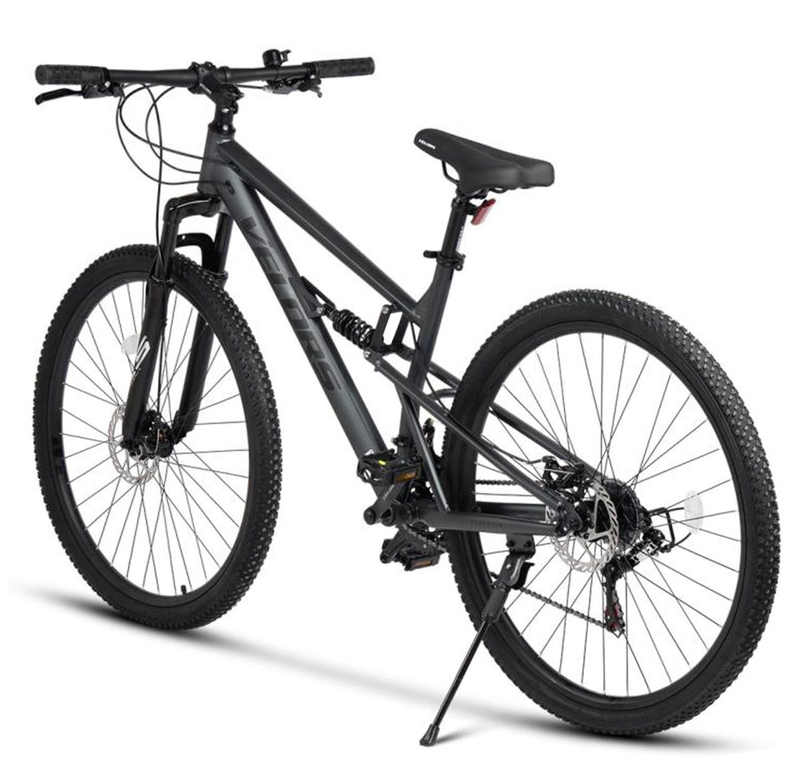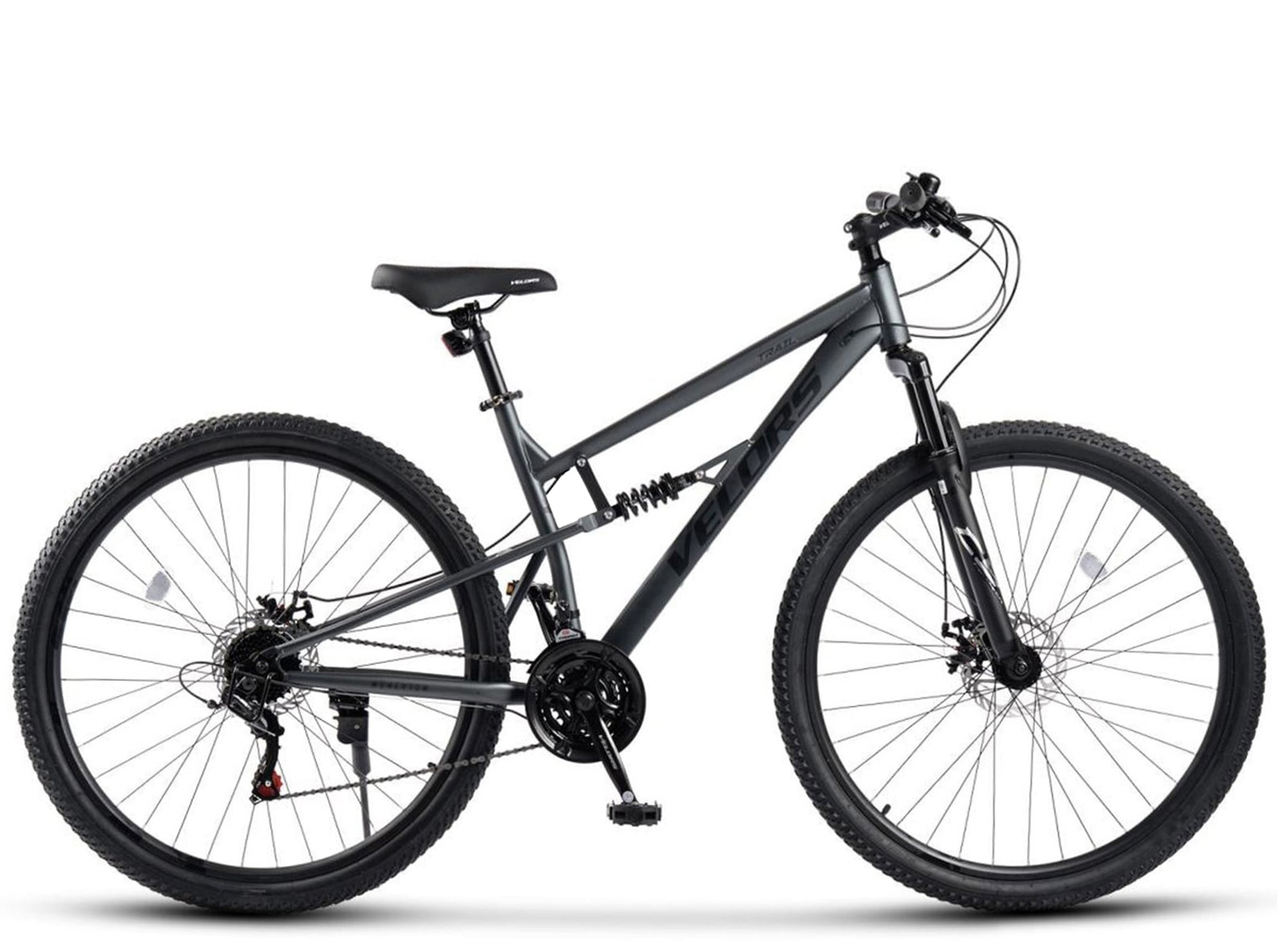 VELORS Bicicleta MTB-FS 24" VELORS Trail 2.4, cadru otel 16", manete secventiale, frane disc, 21 viteze, gri/negru