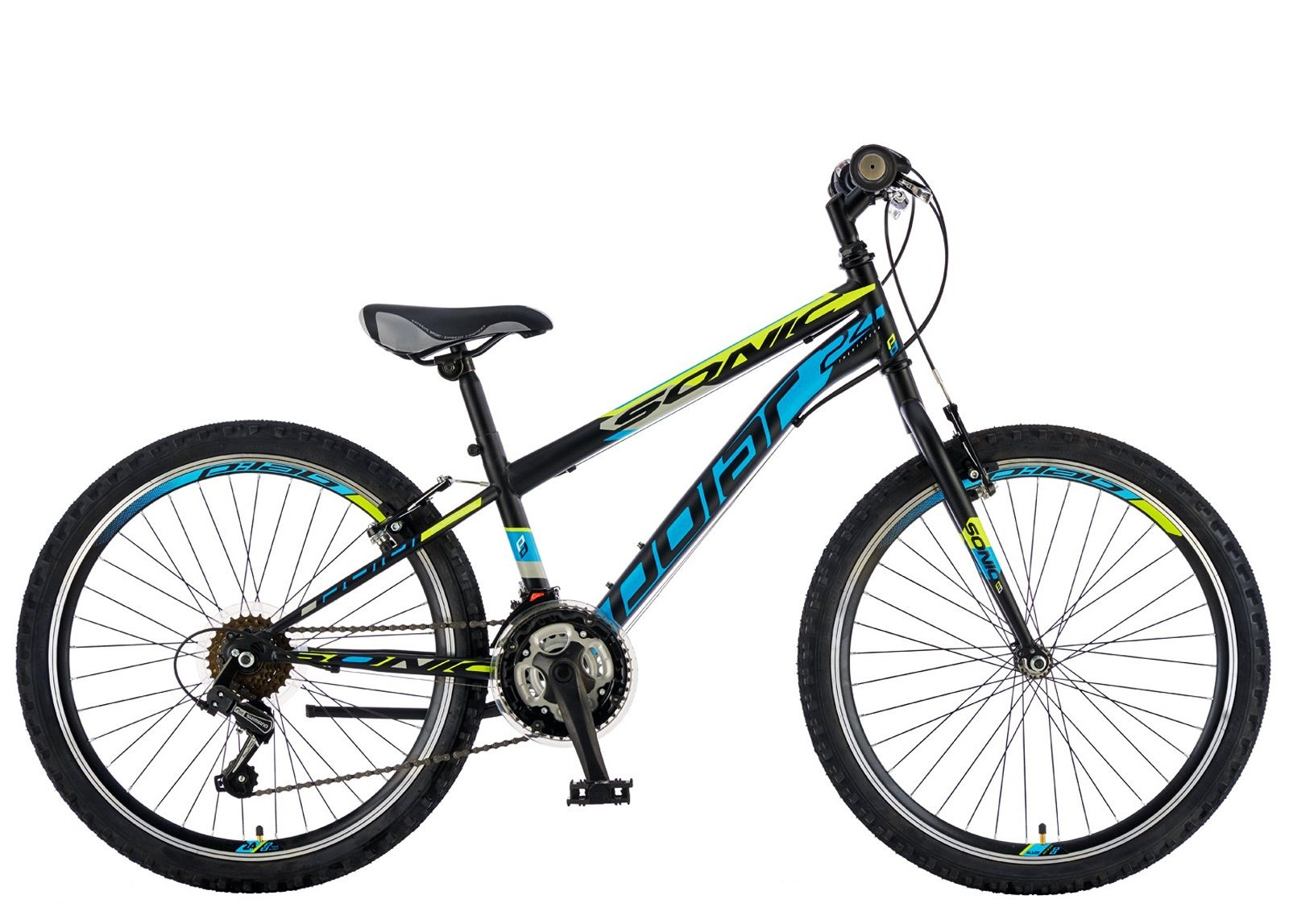 Bicicleta MTB-HT 24" POLAR Sonic, cadru otel 12.5", manete RevoShift, frane V-Brake, 18 viteze, negru/albastru