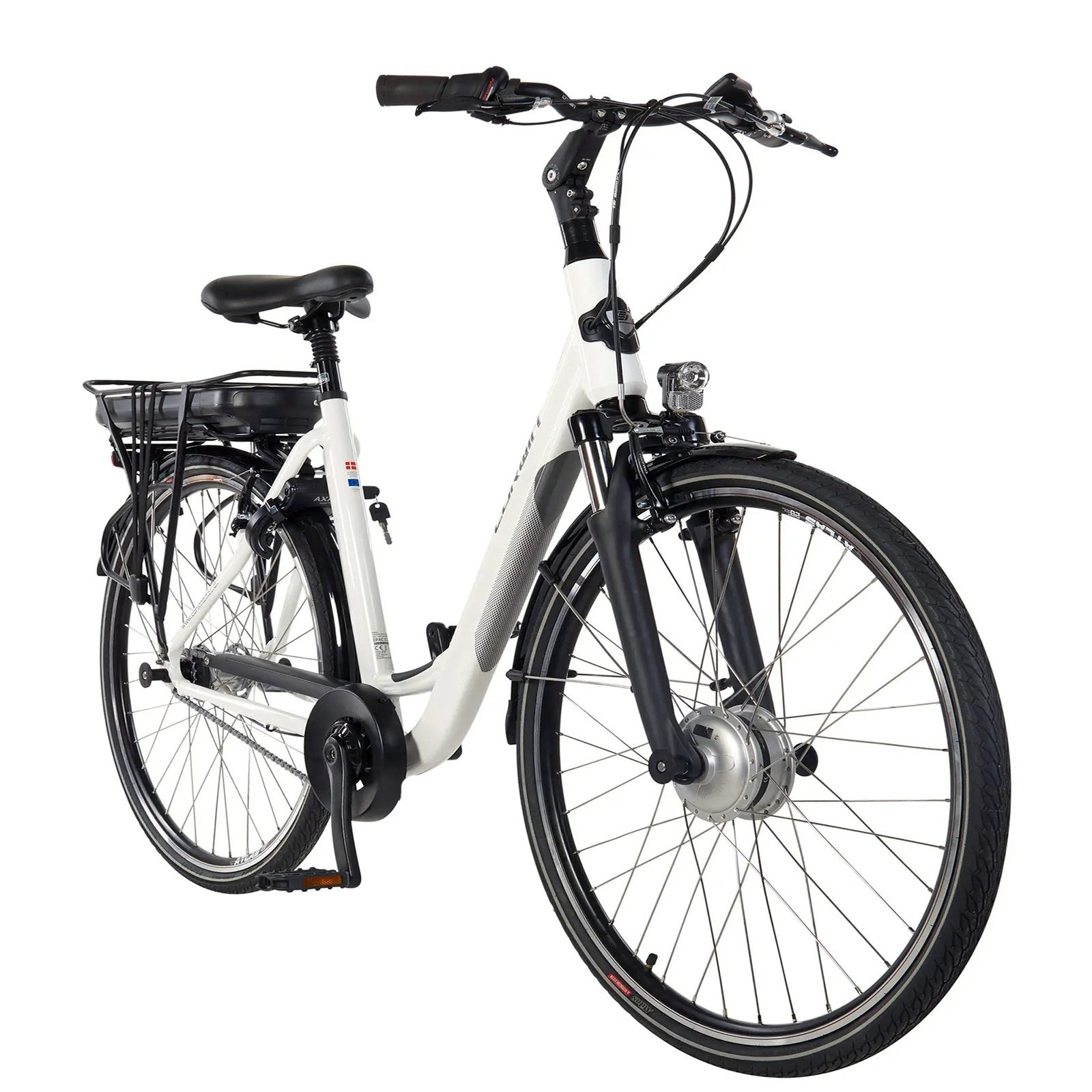 Bicicleta electrica City 28" CORWIN 28122, cadru aluminiu 21", manete revoshift, frane V-Brake/torpedo, 7 viteze, alb