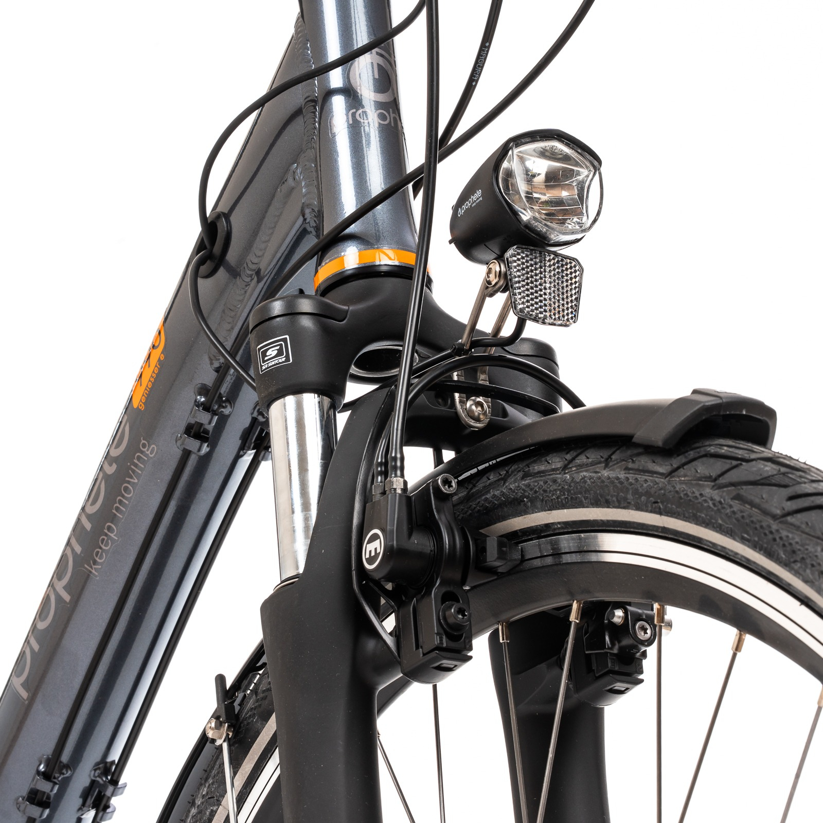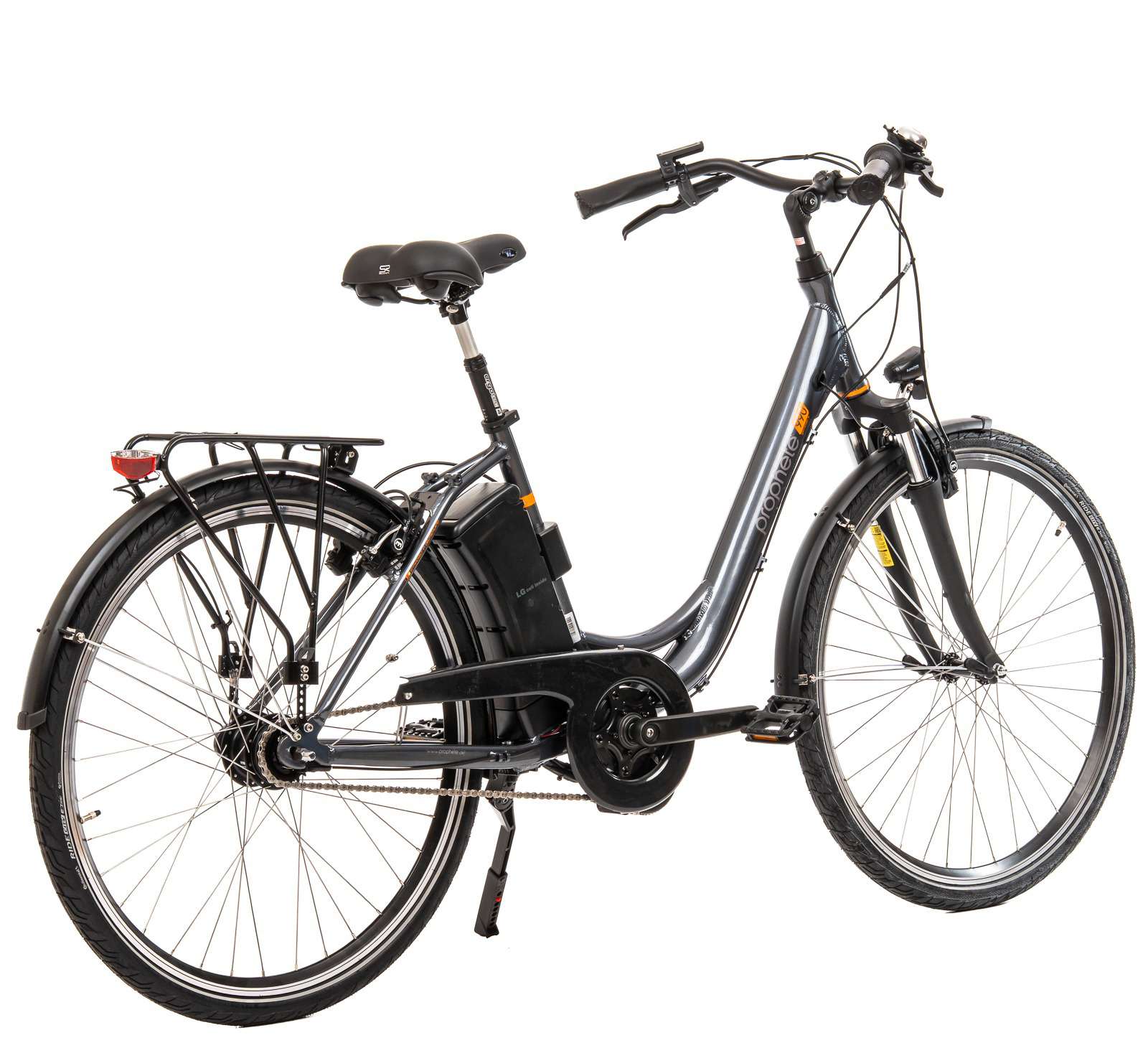 Confortabila pentru utilizarea in oraș, puternica bicicletă electrică PROPHETE 990 Geniesser Elektro-Fahrad poate fi o alegere demna de luat in considerare pentru cei care se deplaseaza preponderent in mediul urban. Bicicleta dispune de un cadru din aluminiu unisex, geometria cadrului permitand utilizarea ei atat de catre barbati cat si de catre femei. Rotile de 28" sunt din aluminiu duble, echipate cu un set de anvelope CONTINENTAL City Ride E25 cu banda reflectorizanta si antipana. Transmisia cu 7 viteze este asigurata de un schimbator SHIMANO Nexus-7 in butuc, actinat de un o maneta RevoShift SHIMANO Nexus-7. Franele MAGURA HS11 sunt V-Brake hidraulce, precise in franare indiferent de conditiile de rulare. Motorul central BAFANG Trio e-Novation de 36 V si 250W oferă asistență la pedală până la o viteză de 25 km/h și, în funcție de stilul de condus, are o autonomie de până la 100 km. Bateria de 12.8 Ah din spatele tubului scaunului, cu capacitatea sa de 461 Wh, oferă nu numai multă energie pentru tururile tale, dar asigură și că bicicleta ta electrică are un centru de greutate poziționat optim. Acest lucru înseamnă un nivel ridicat de stabilitate in rulare. Urcarea pe bicicletă este deosebit de confortabilă cu cadrul Wave. Sistemul de iluminare al bicicletei este la fel de important ca și frânele. Prin urmare, acest model este echipat cu un far de 70 LUX de la PROPHETE și un stop spate BÜCHEL cu funcție de lumină de frână, astfel vei rămâne vizibil pentru ceilalți participanti la trafic chiar și pe întuneric.