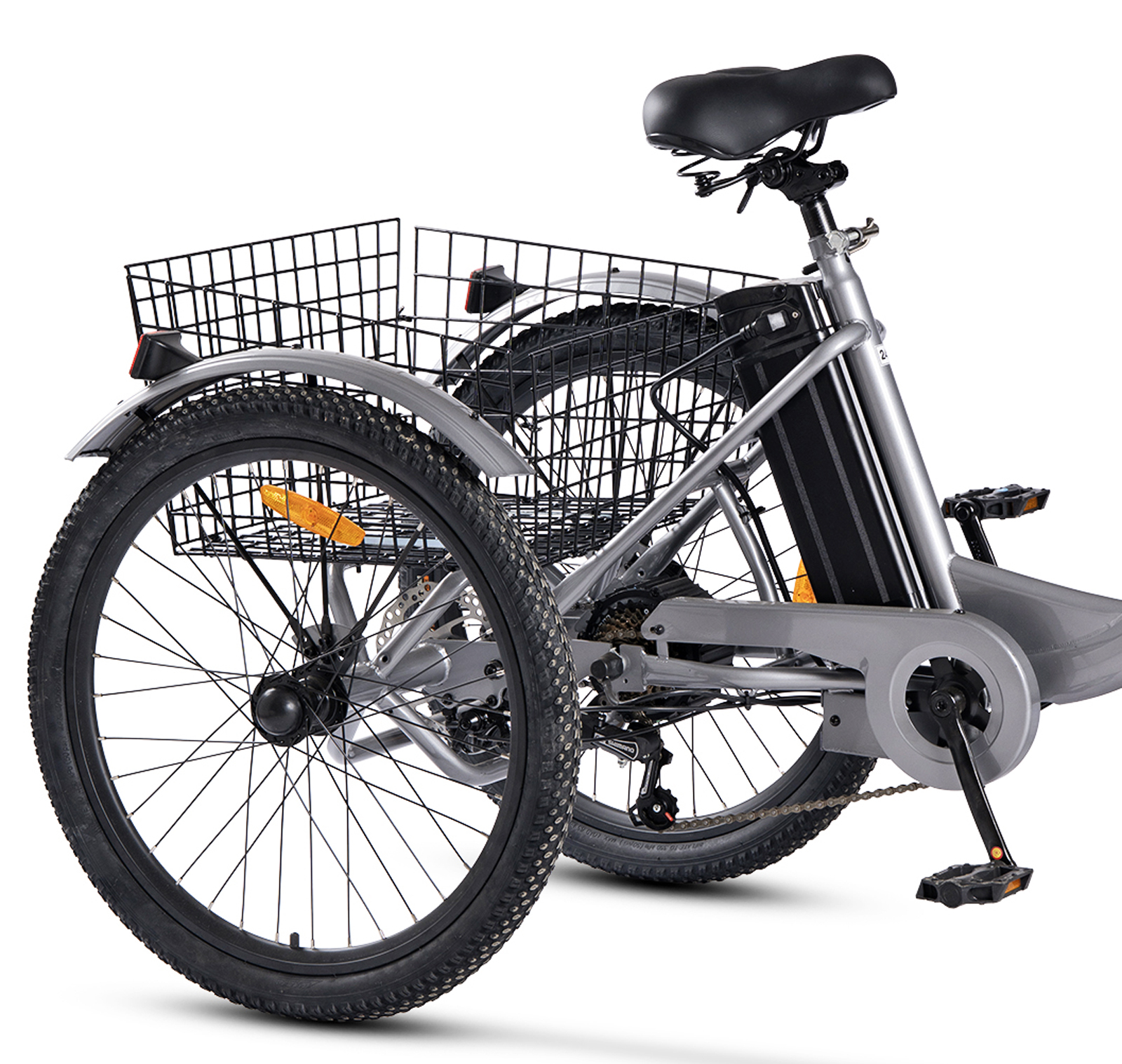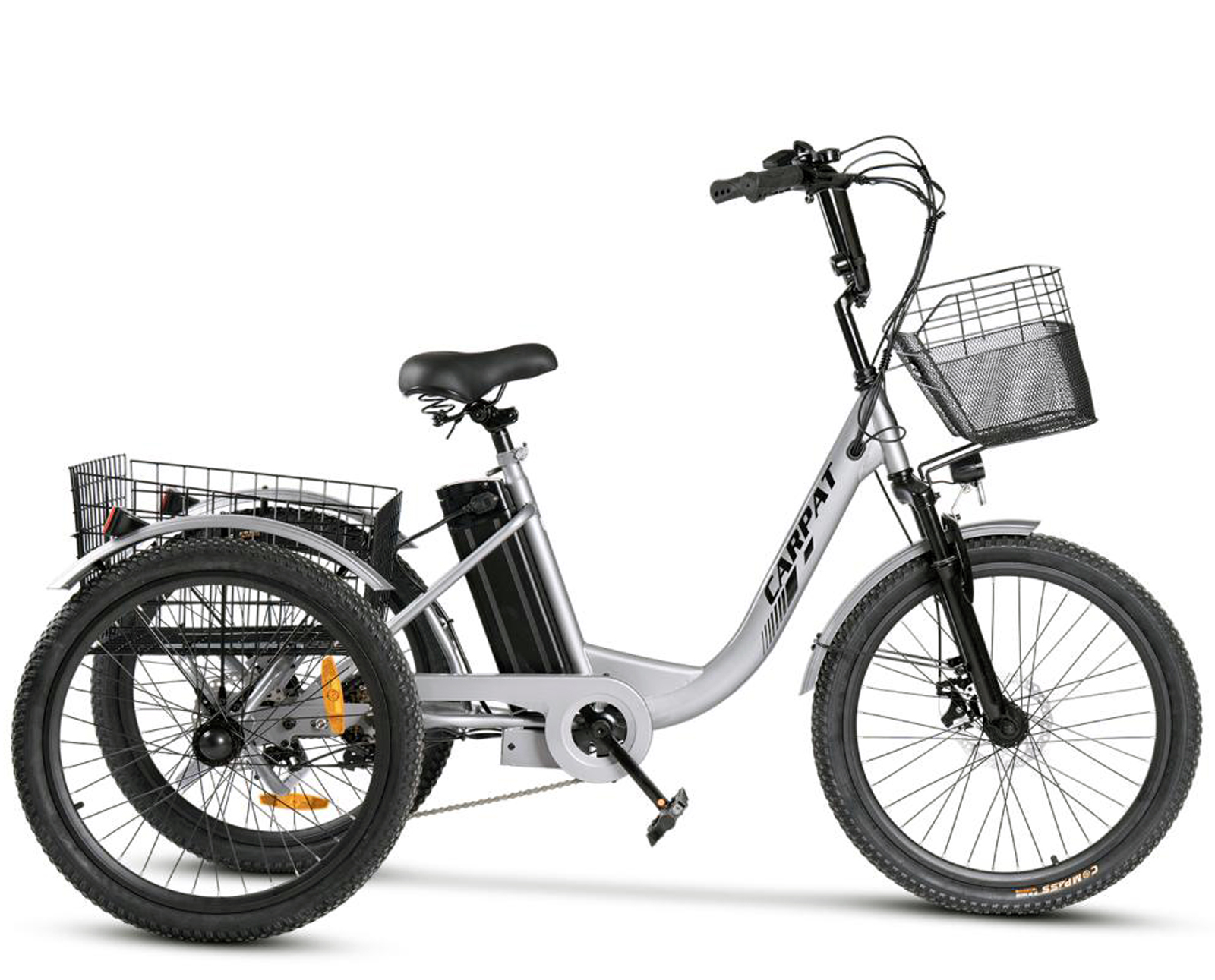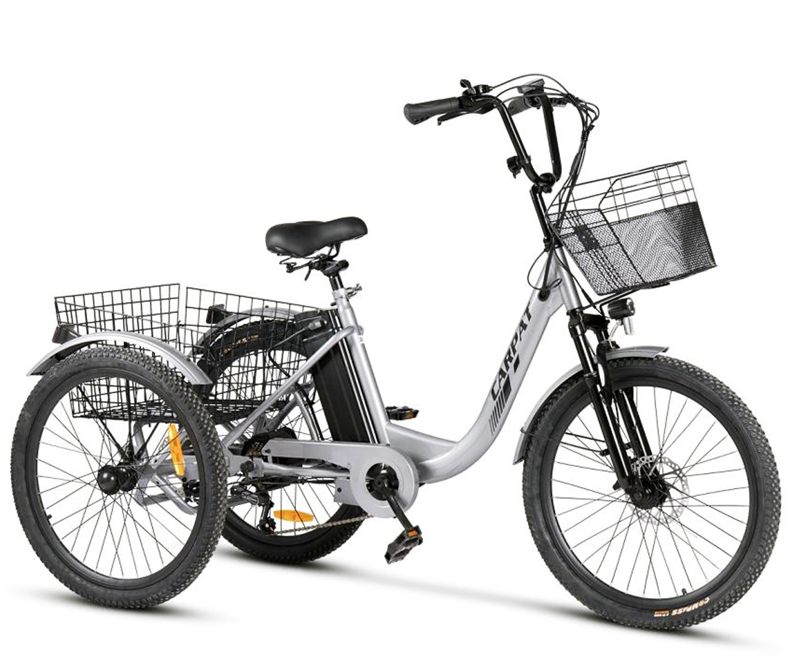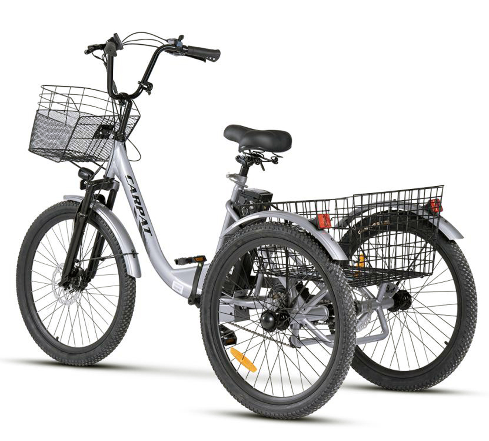 Tricicleta electrica 24" CARPAT E-Senior 24560E, cadru otel 16", frane disc/tambur, 7 viteze, autonomie 40-60 km, gri/negru