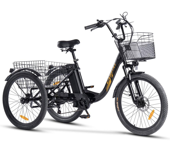 CARPAT BICYCLES Tricicleta electrica 24" CARPAT E-Senior 24560E, cadru otel 16", frane disc/tambur, 7 viteze, autonomie 40-60 km, negru/galben