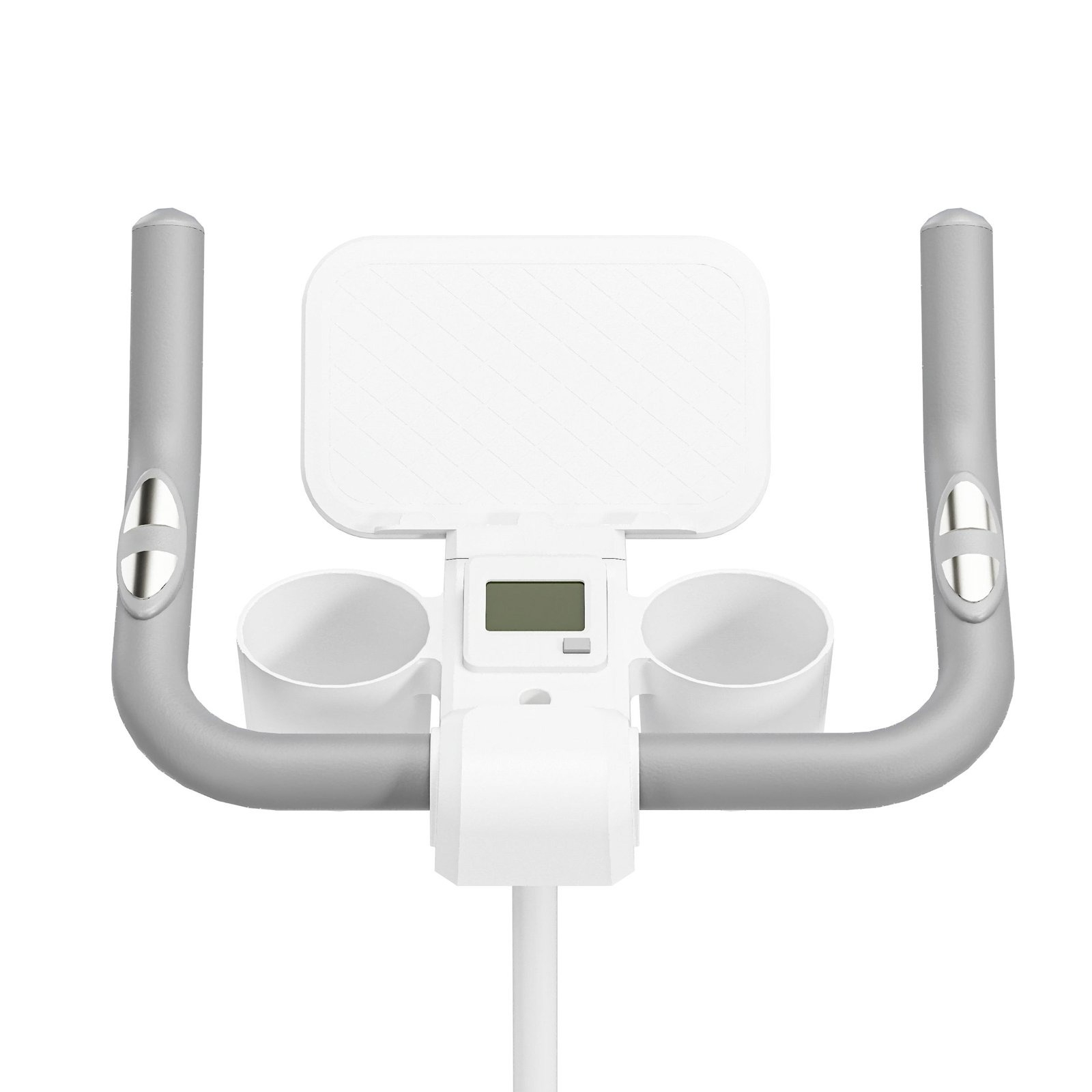 - Conectivitate și suport : Bicicleta este echipată cu suport pentru tabletă/smartphone și suport pentru sticlă de apă, asigurându-ți accesul la divertisment și hidratare în timpul antrenamentelor intense.
