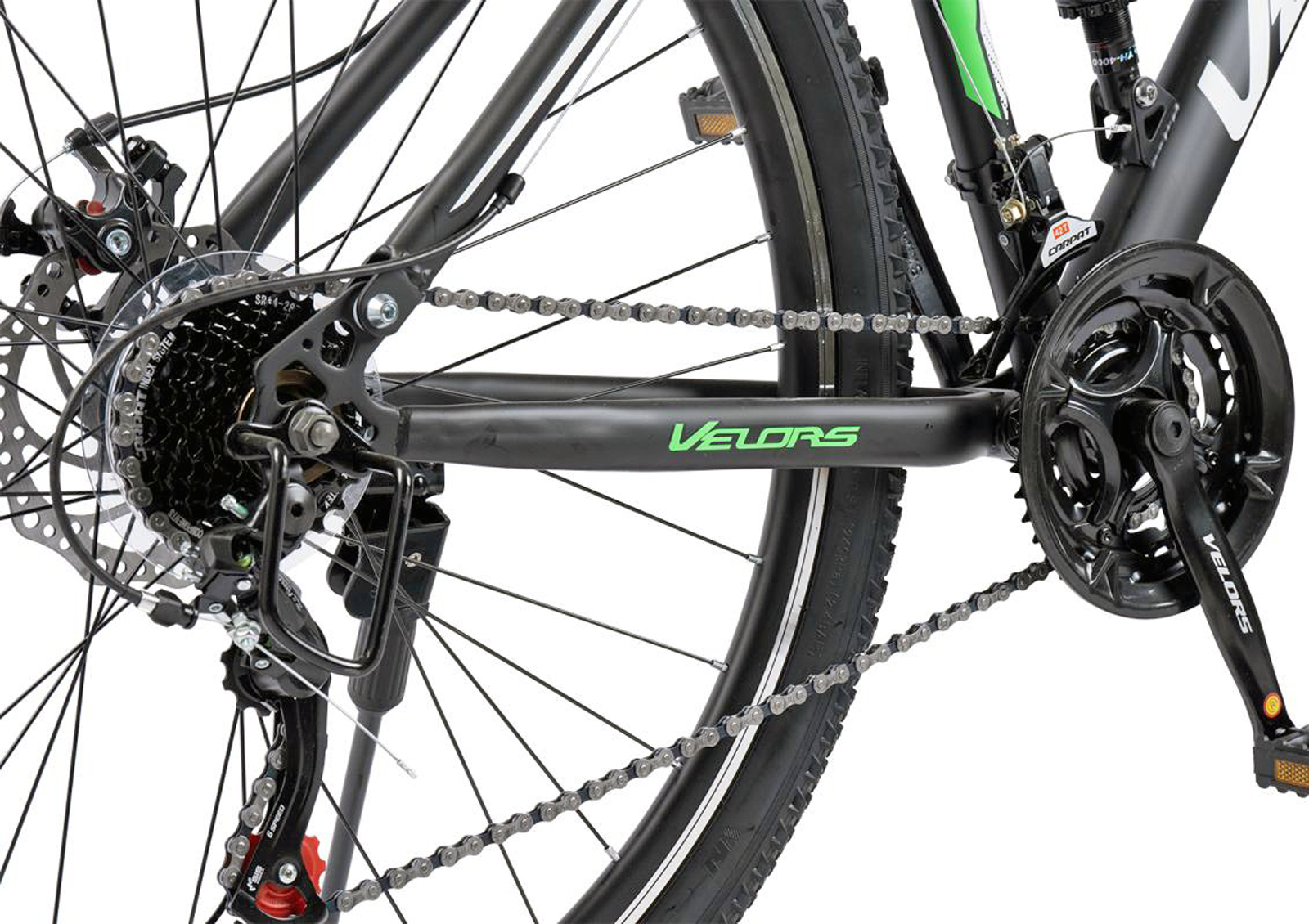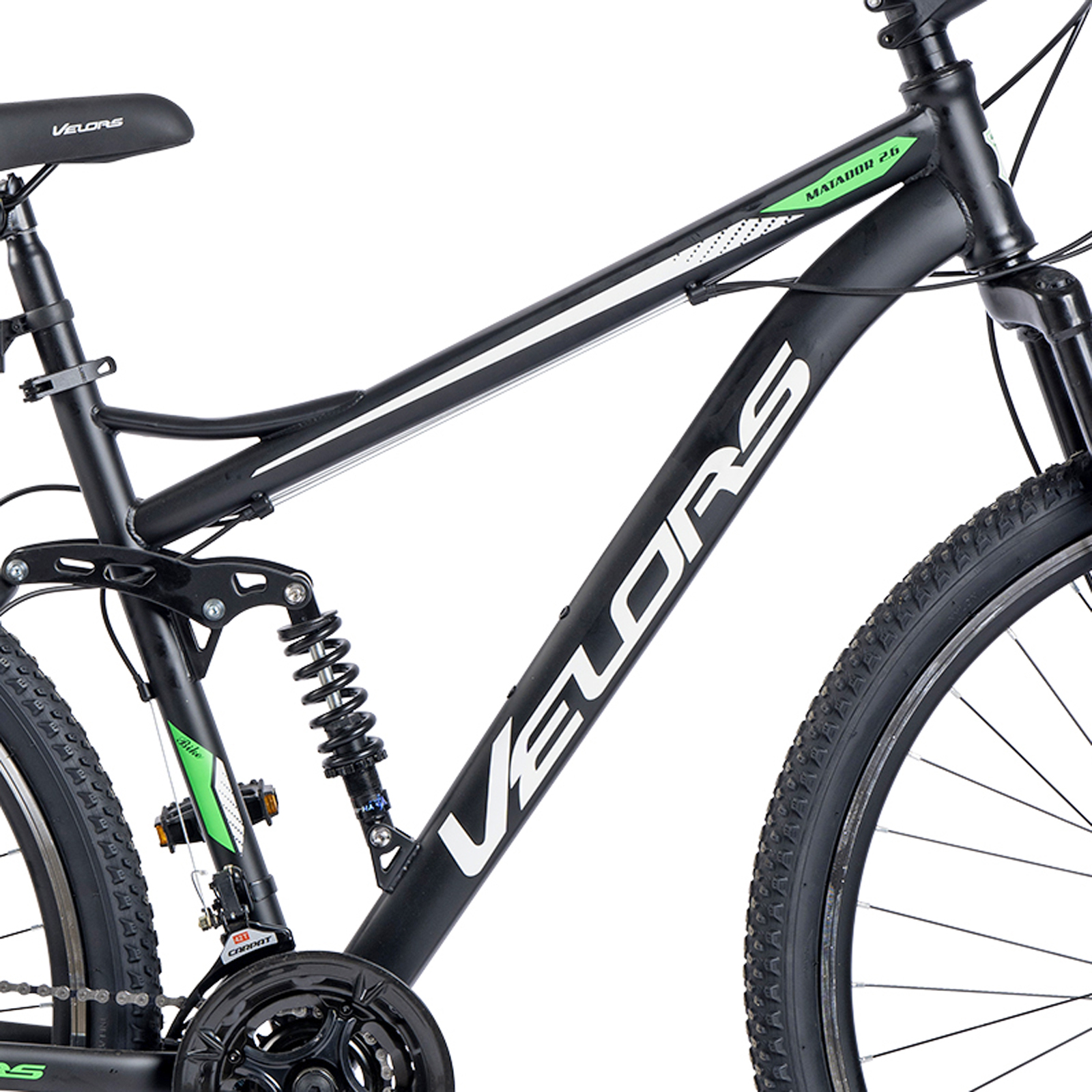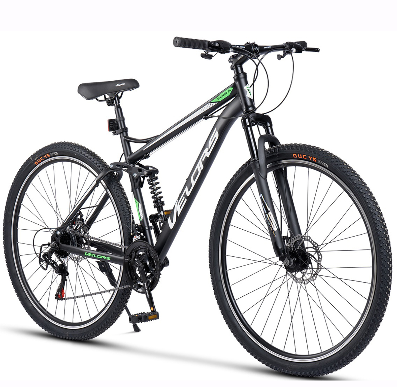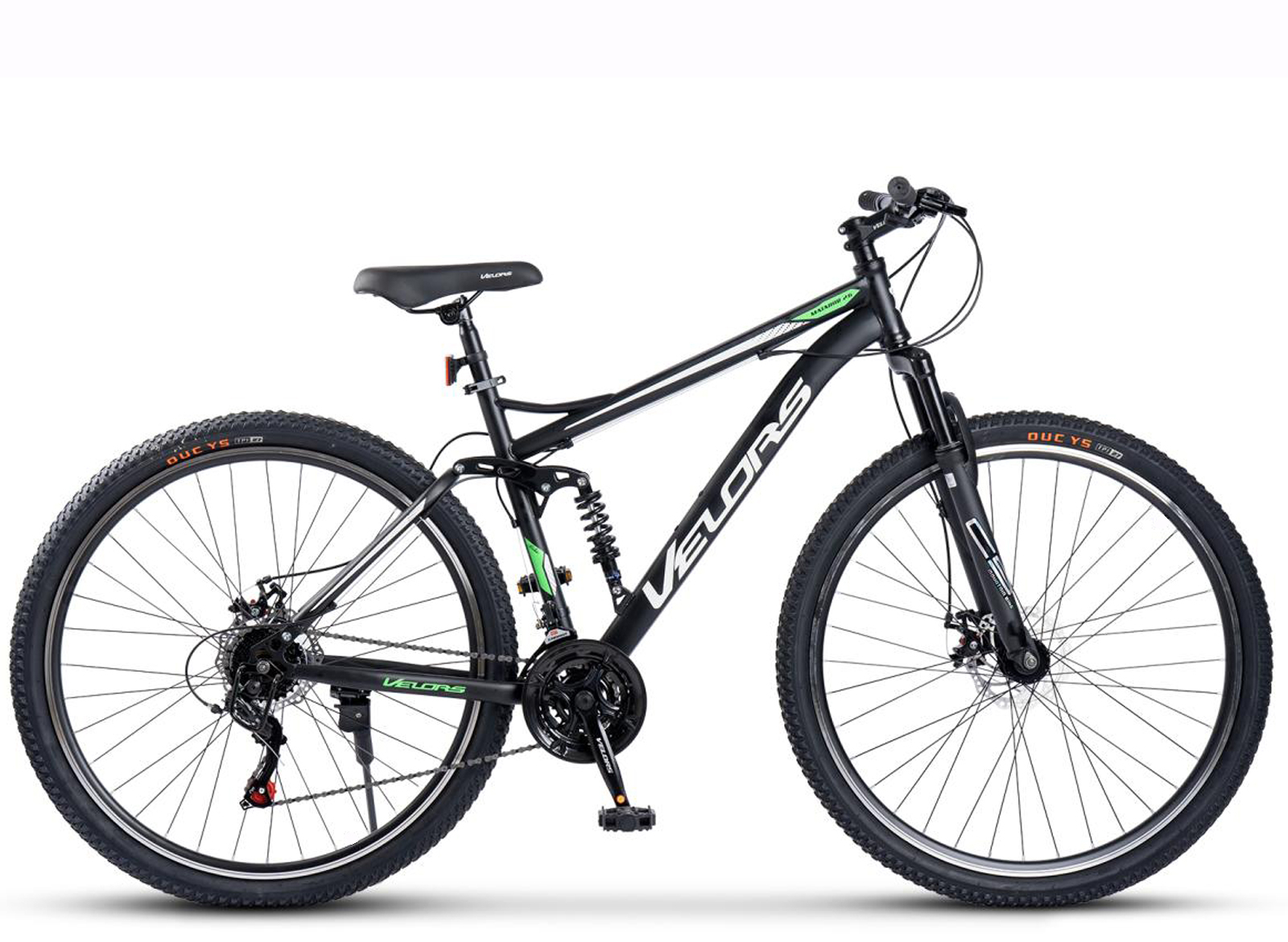 VELORS Bicicleta MTB-FS 29" VELORS Matador 2.9, cadru otel 17", manete secventiale, frane disc, 21 viteze, negru/verde