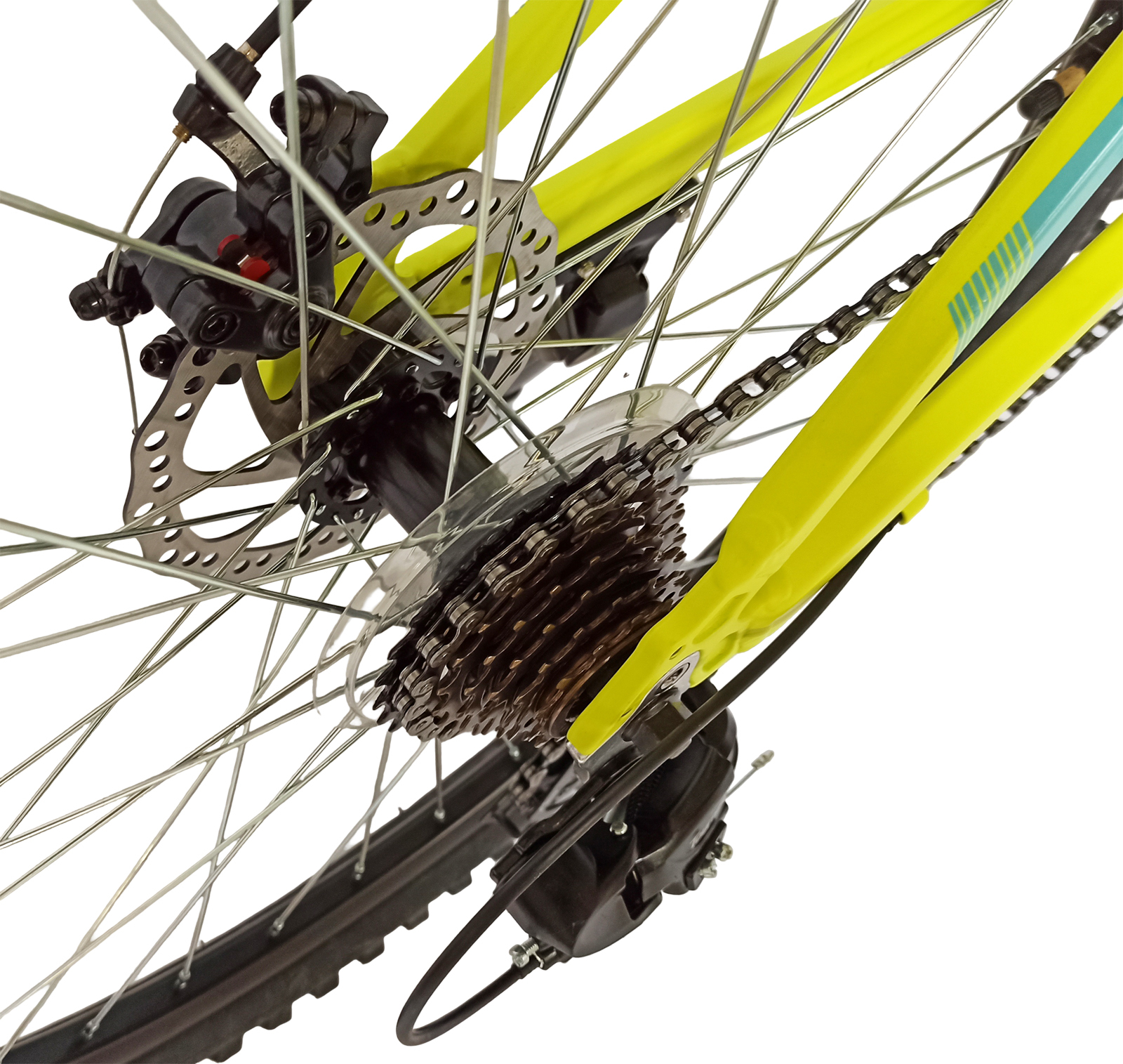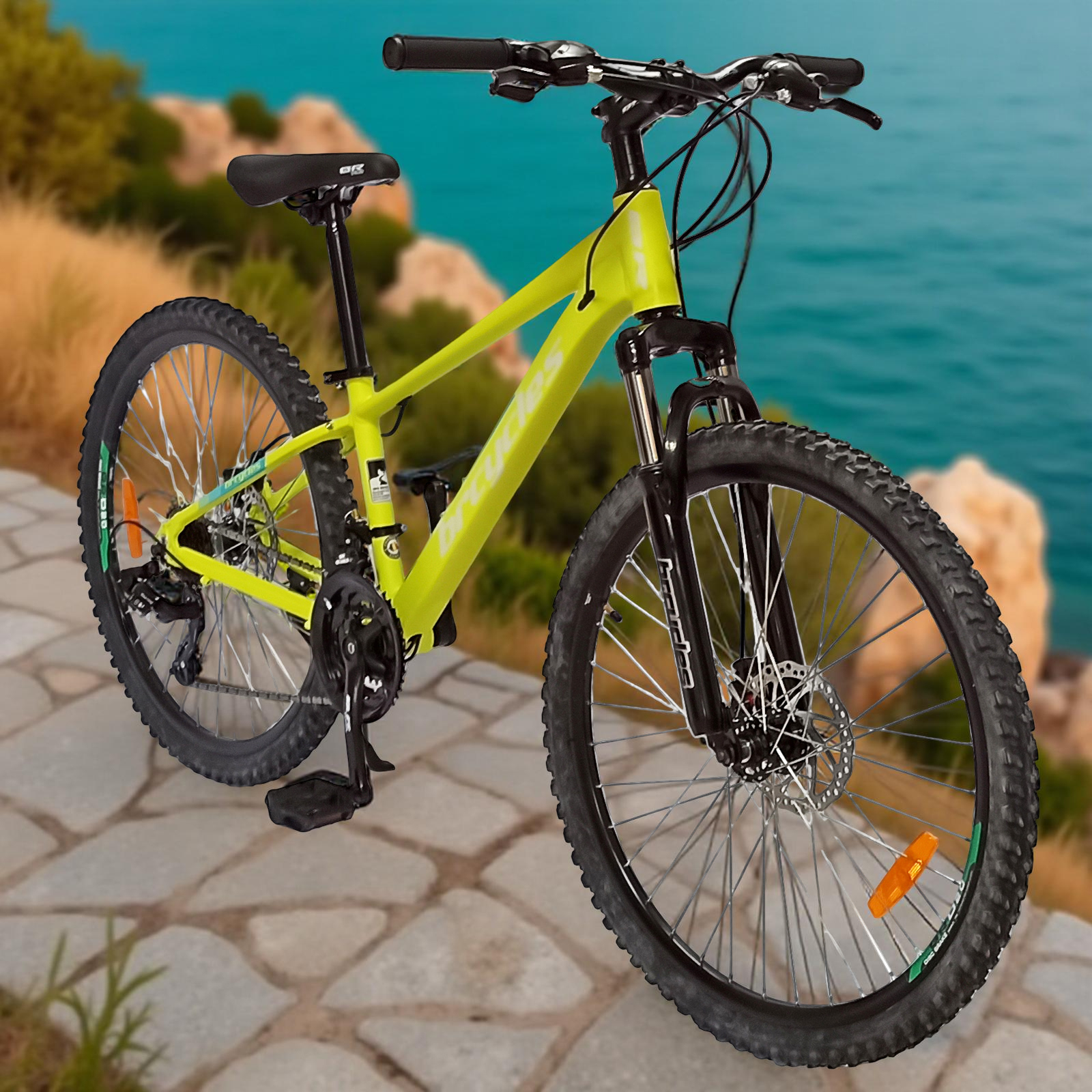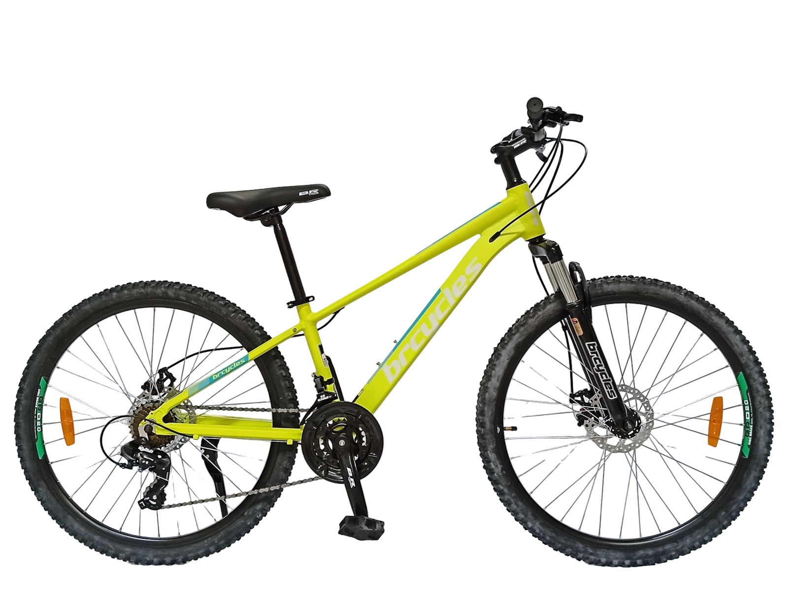 Bicicleta MTB-HT 26" BR Tornado, cadru aluminiu 13.5", manete secventiale, frane disc, 21 viteze, galben fluo mat