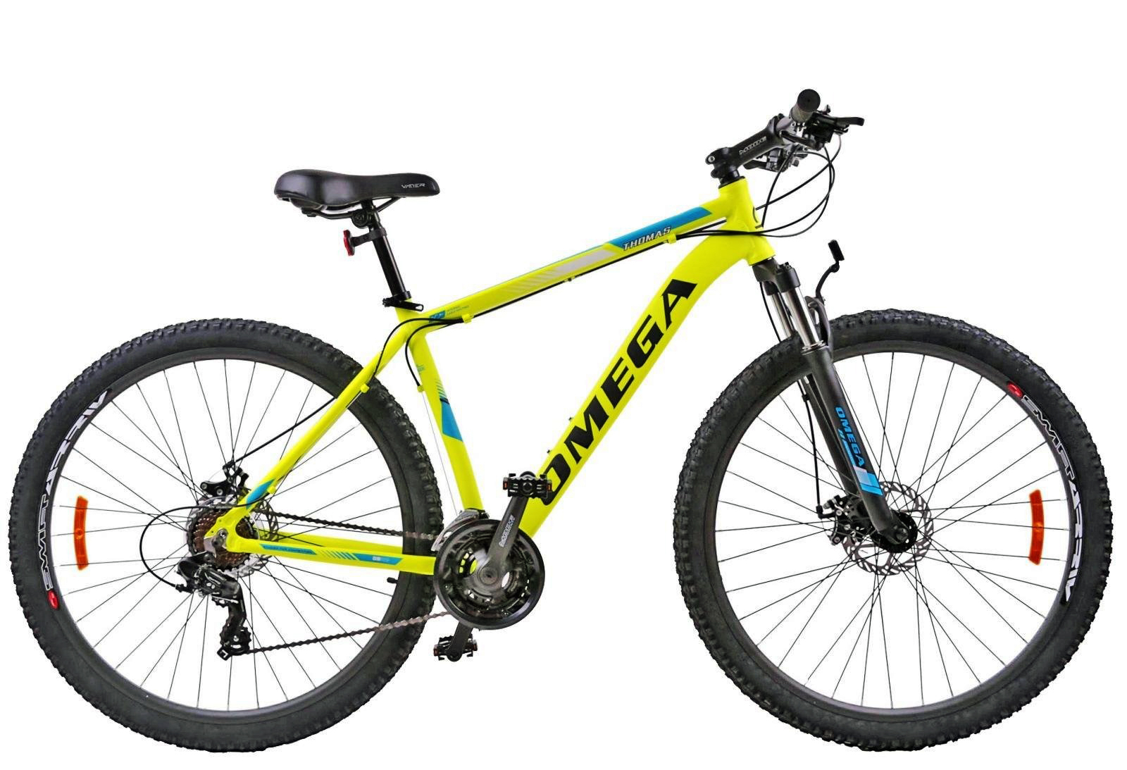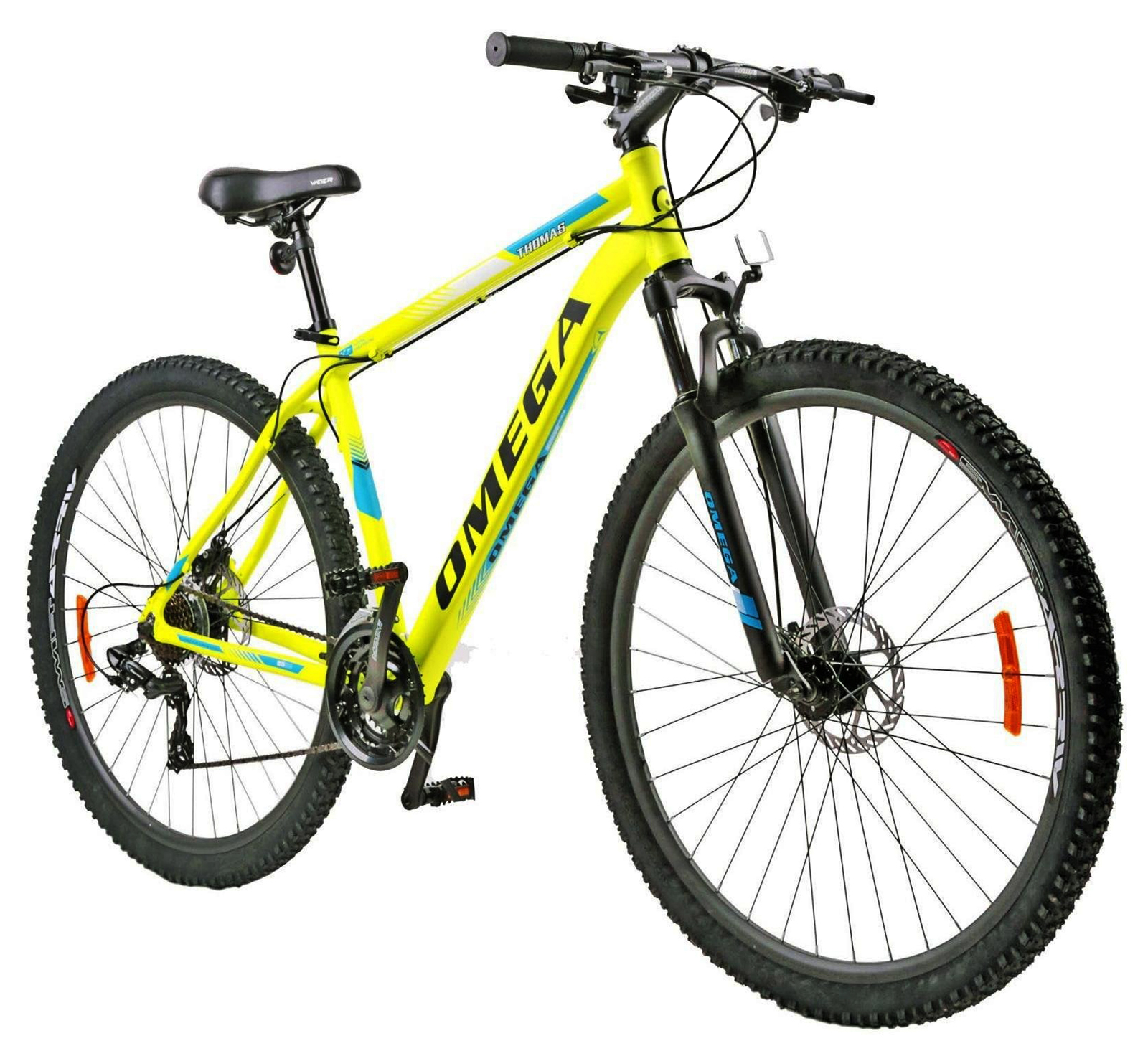 Bicicleta MTB-HT 27.5" OMEGA Thomas, cadru aluminiu 19.5", manete secventiale, frane disc, 21 viteze, galben/albastru