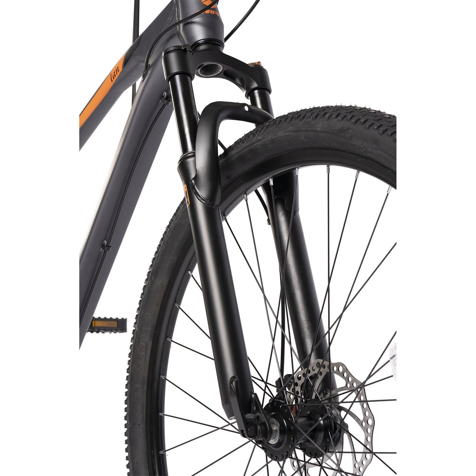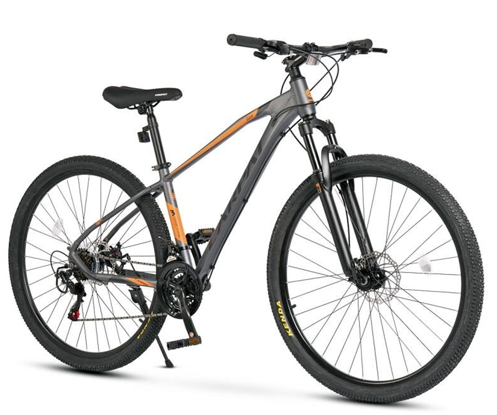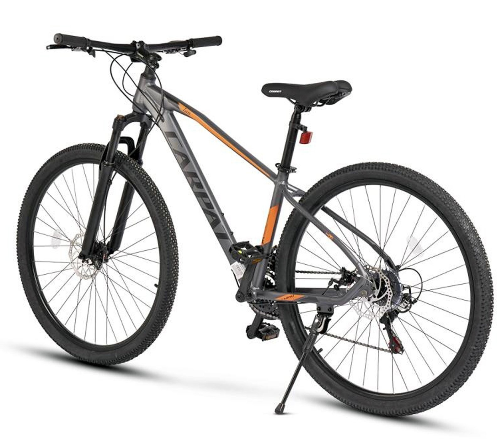 Bicicleta MTB-HT 29" CARPAT Ian 2.9, cadru aluminiu 18", manete secventiale, frane disc, 21 viteze, gri/portocaliu