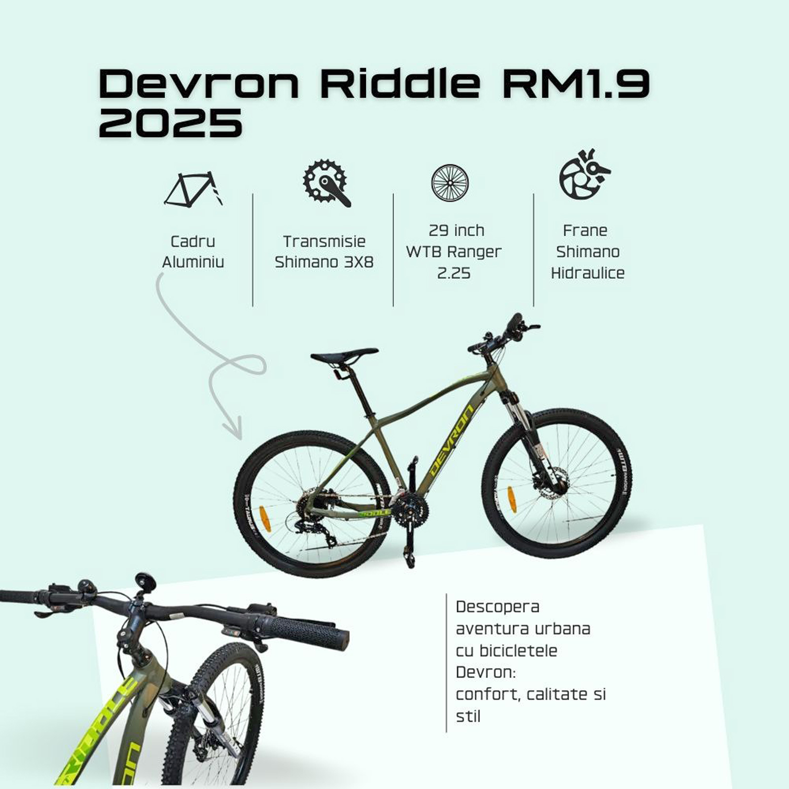 Bicicleta MTB-HT 29" DEVRON Riddle RM1.9, cadru aluminiu 19.5", manete secventiale, frane hidraulice, 24 viteze, verde/galben