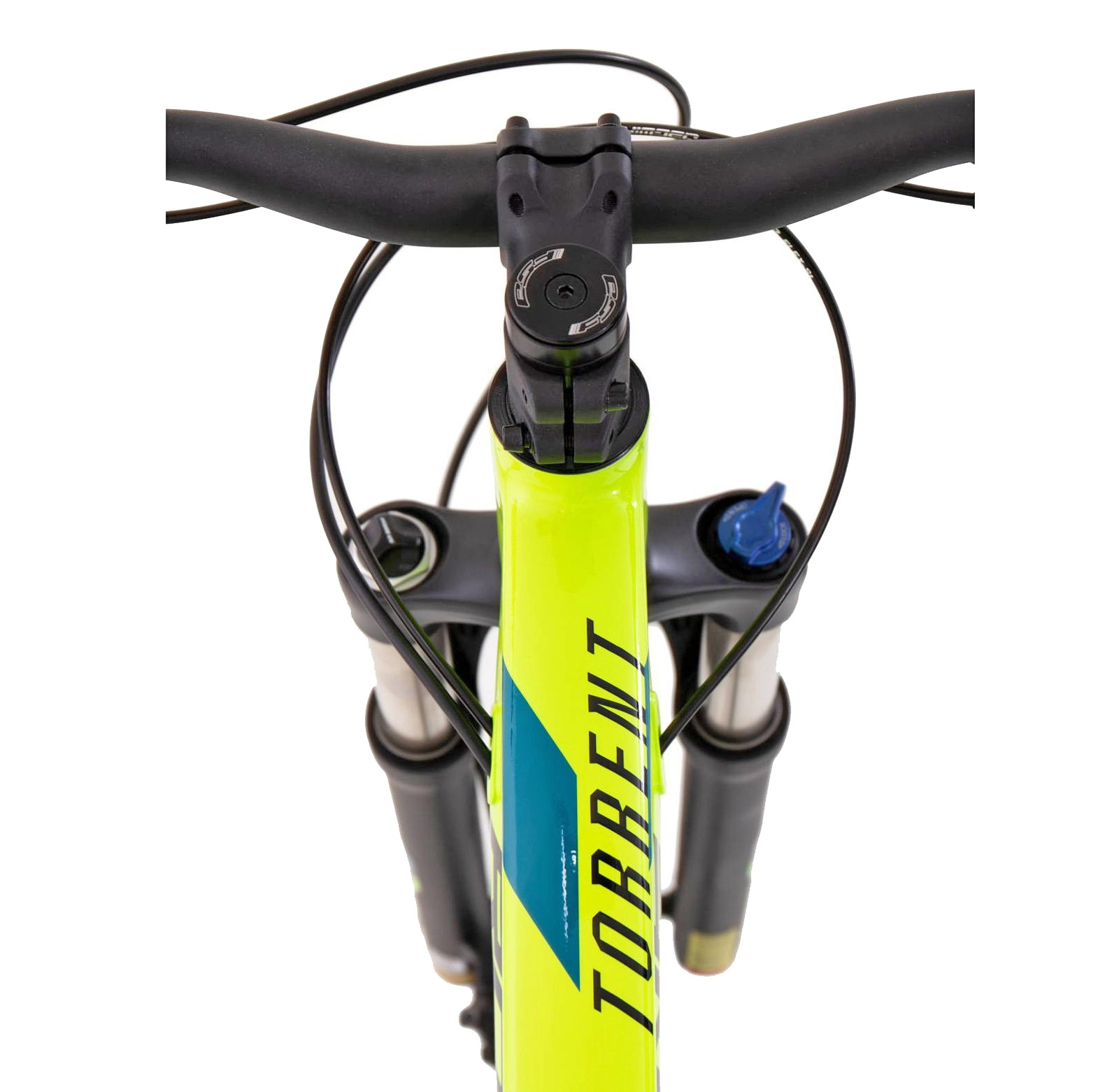 Bicicleta MTB-HT 29" ROCK MACHINE Torrent 20-29, cadru aluminiu 23", manete secventiale, frane hidraulice, 18 viteze, galben fluo/negru/albastru