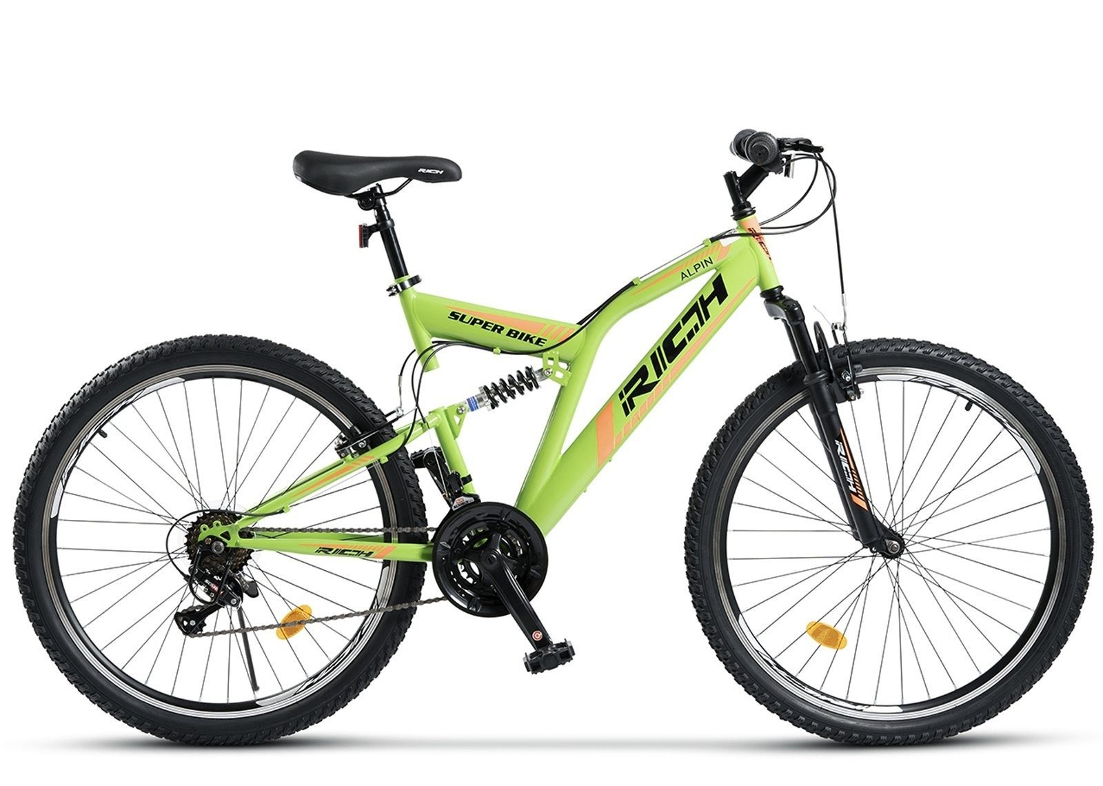 RICH BIKE Bicicleta MTB-FS 26" RICH Alpin 2.6, cadru otel 17", frane V-Brake, 18 viteze, verde/portocaliu