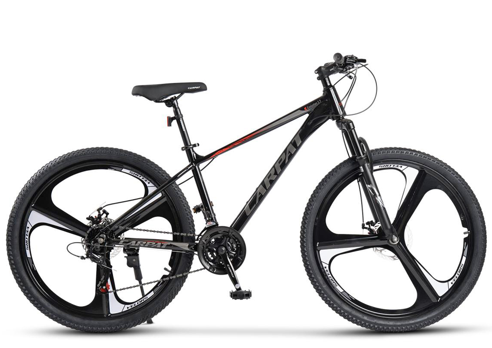 CARPAT BICYCLES Bicicleta MTB-HT 27.5" CARPAT Evolution 2.7, cadru aluminiu 18", jante magneziu, manete secventiale, frane disc, 21 viteze, negru/rosu