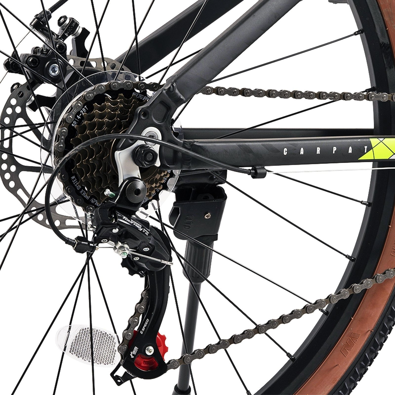 Bicicleta MTB-HT 27.5" CARPAT Forever 2.7, cadru aluminiu 18", manete secventiale, frane disc, 21 viteze, negru/gri