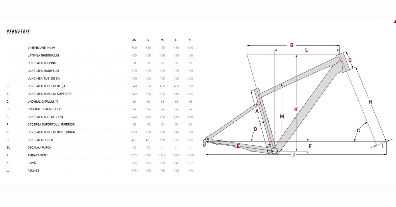 | INALTIME UTILIZATOR | - Marime cadru 16.5"/M/420 mm - 165-175 cm - Marime cadru 18"/L/460 mm - 175-185 cm - Marime cadru 20"/XL/500 mm - 185-195 cm |