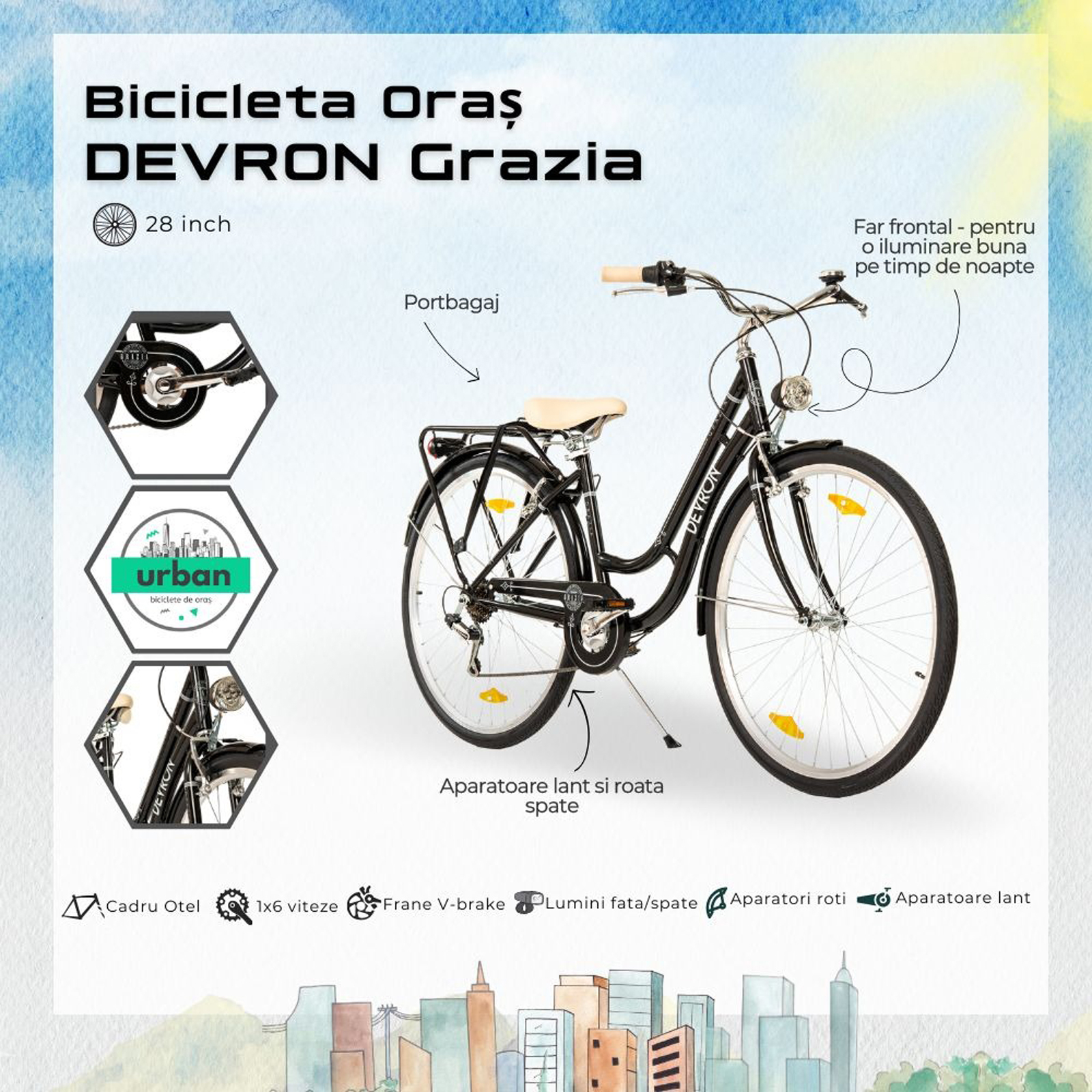 Bicicleta oras 28" DEVRON Grazia Retro 6S, cadru otel 18", manete revoshift, frane V-Brake, 6 viteze, negru