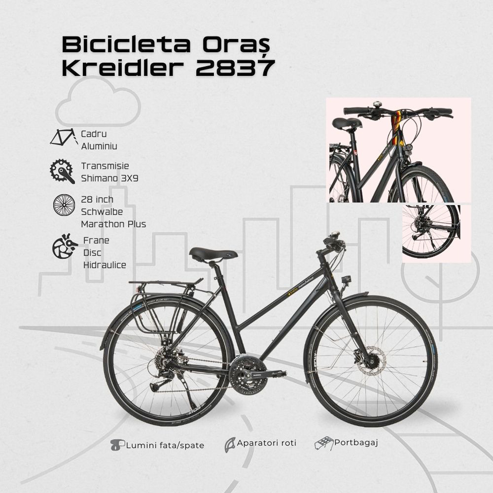 Bicicleta trekking 28" KREIDLER Kieler W, cadru aluminiu 19.5", manete secventiale, frane hidraulice, 27 viteze, negru