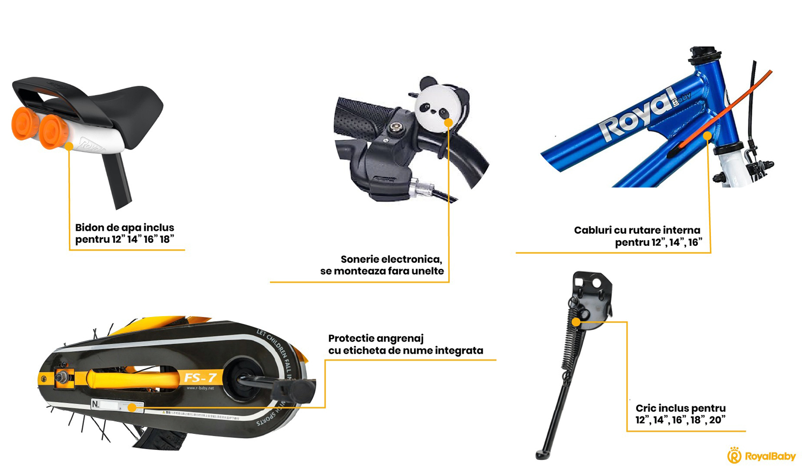 In timp ce standardele inalte de securitate vor face parintii fericiti, cosurile integrate, soneriile sau bidoanele de apa, accesorii care de obicei nu exista pe bicicletele pentru copii, vor face deliciul acestora.