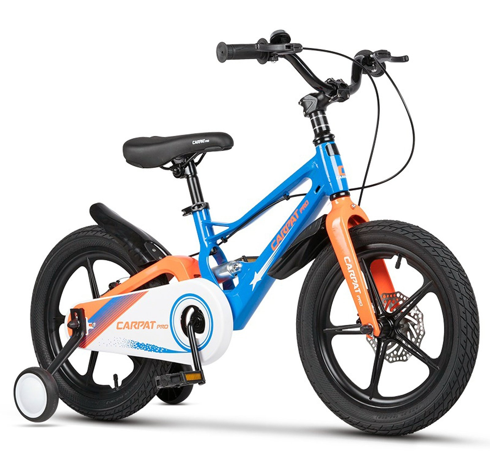 Bicicleta copii 16" CARPAT Pro 16144, cadru aluminiu full-suspension, jante magneziu, albastru/portocaliu, varsta 4-6 ani