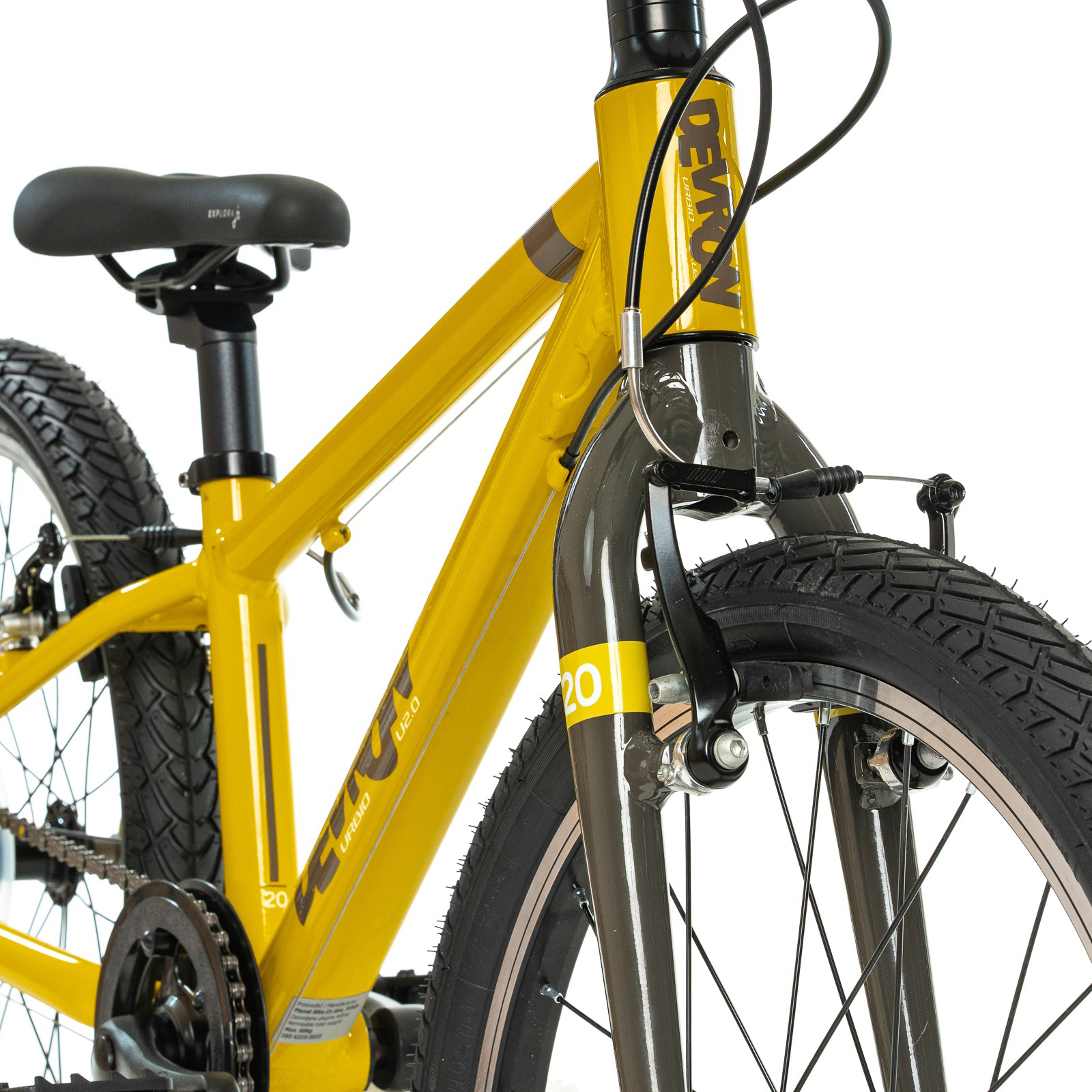 Bicicleta copii 20" DEVRON Urbio U2.0 SuperLight, cadru aluminiu, manete revoshift, frane V-Brake, 7 viteze, galben/gri